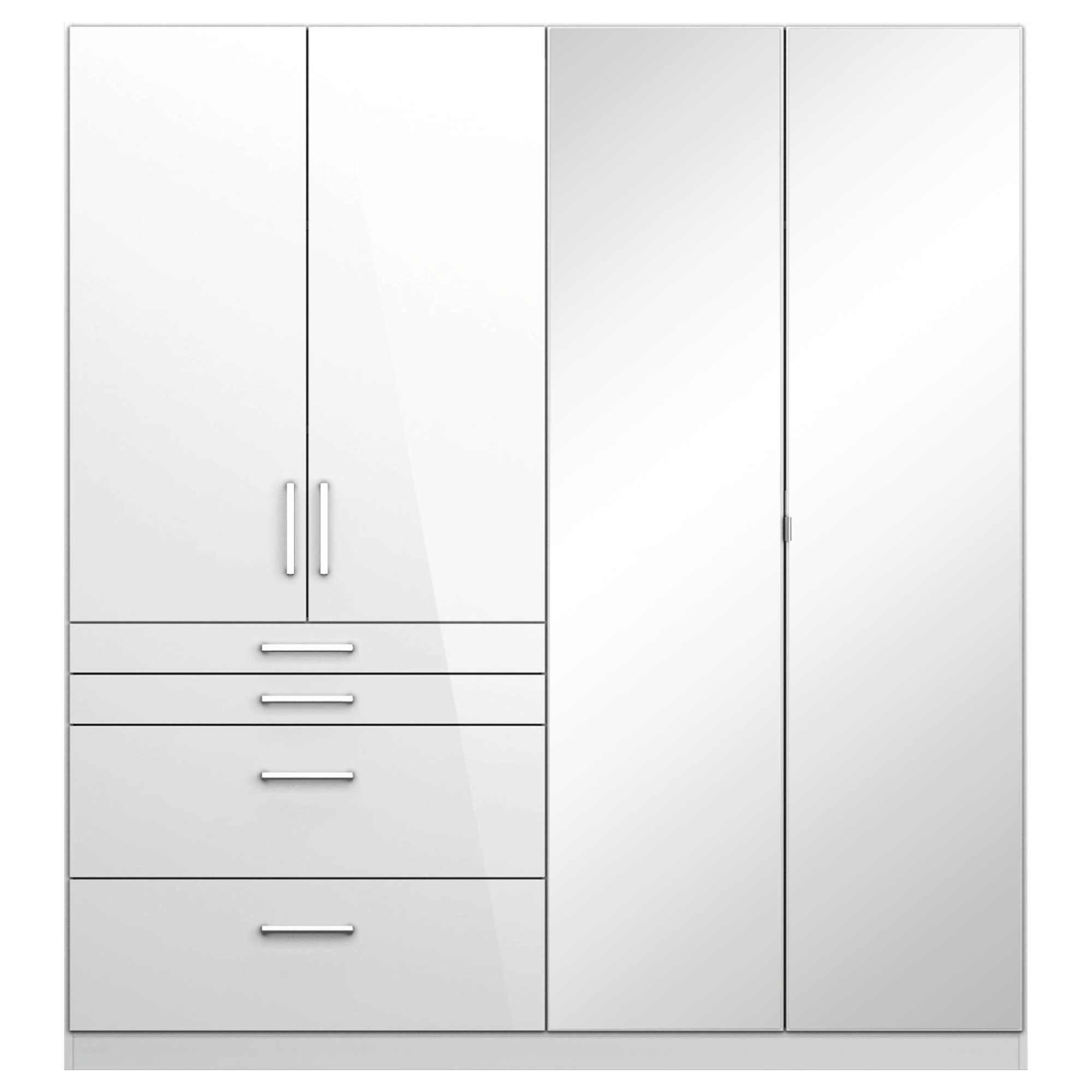 Šatníková skriňa HAYDEN - alpská biela, 4 dvere, 2 zrkadlá