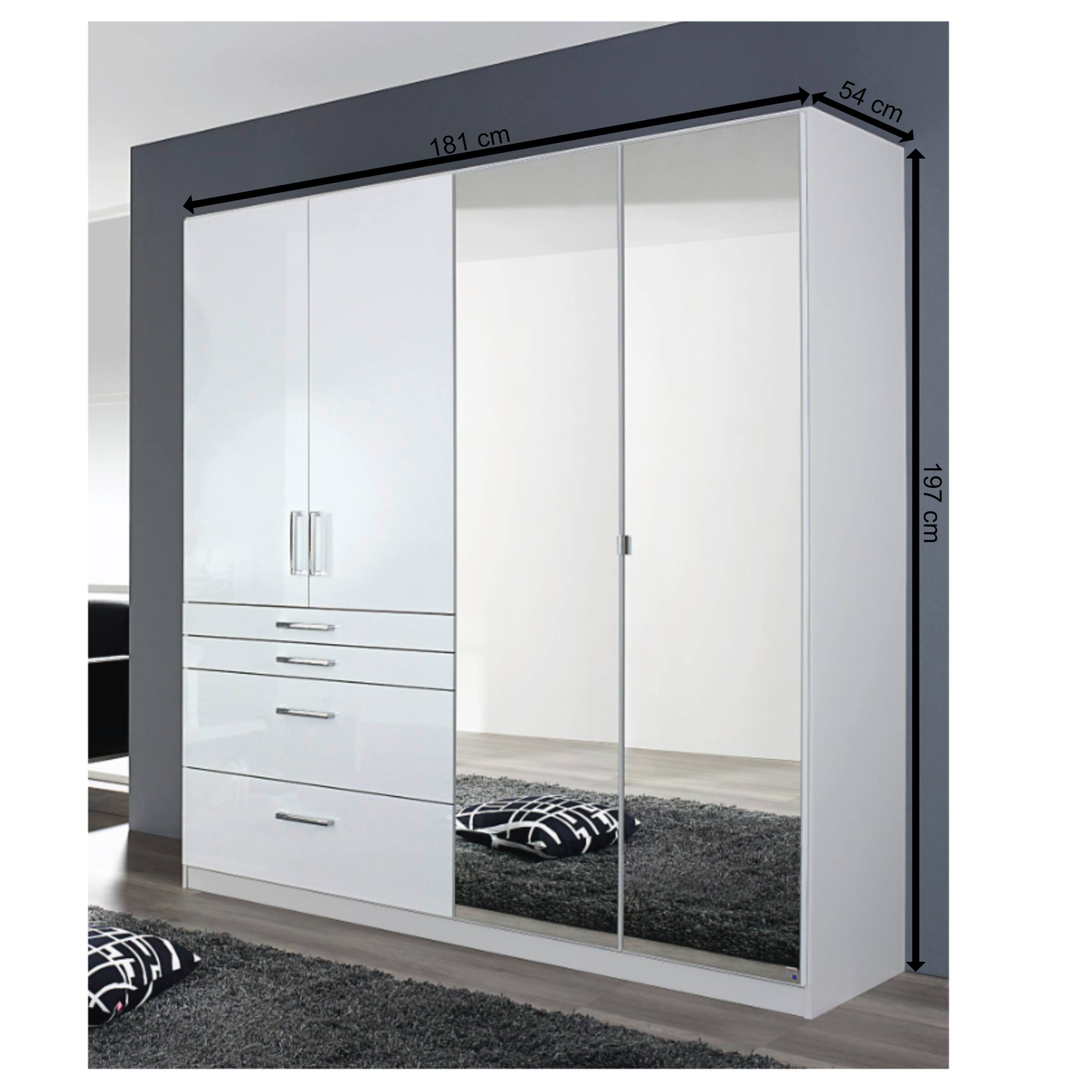 Šatníková skriňa HAYDEN vám poskytne prehľadný úložný priestor, ktorý je možné využiť predovšetkým v spálni alebo v predsieni. Moderná biela farba vo vysokom lesku vytvára neutrálny elegantný dojem, ktorý ľahko zapadne do vášho interiéru. Zrkadlové dvere navyše opticky zväčšia interiér a dodajú skrini na luxuse.