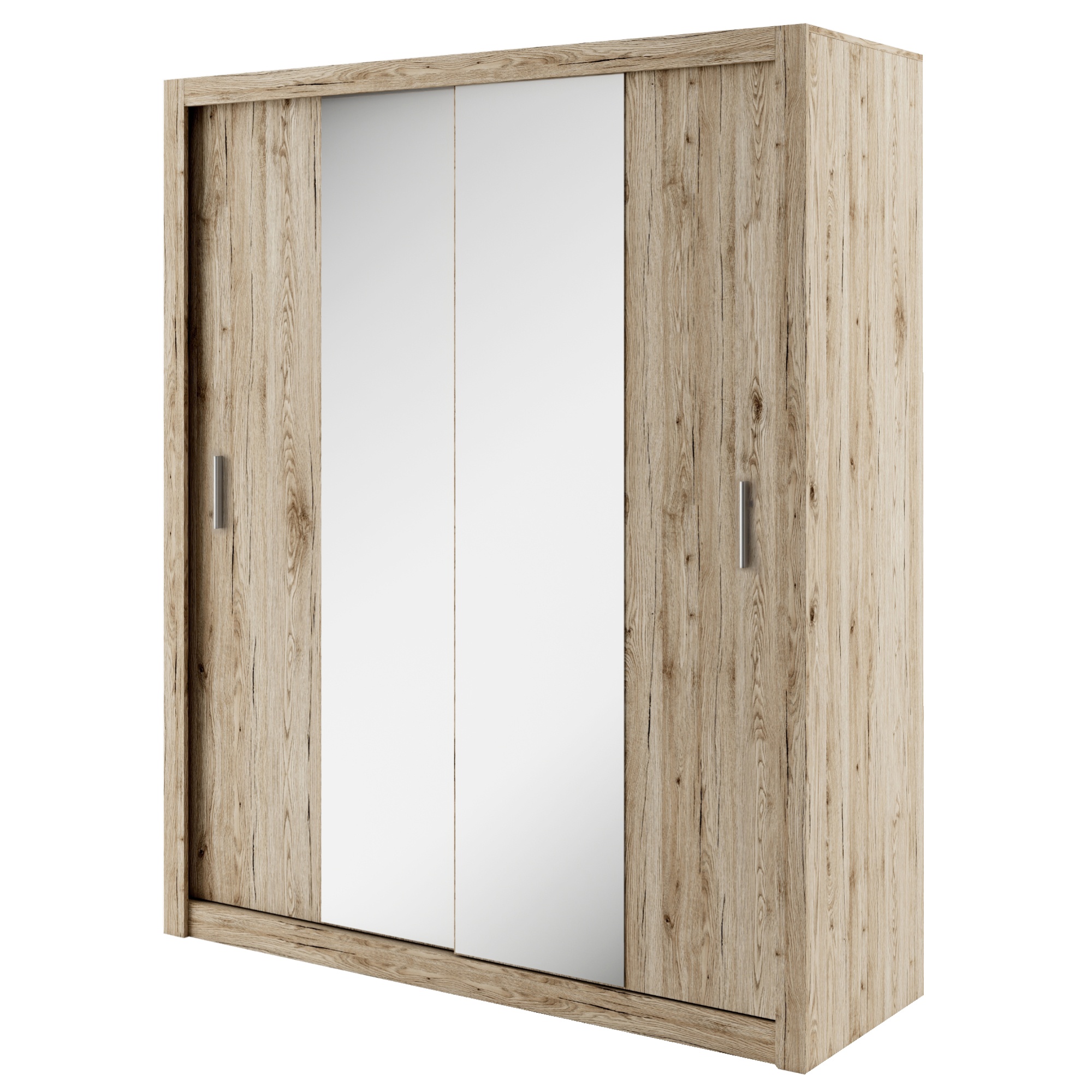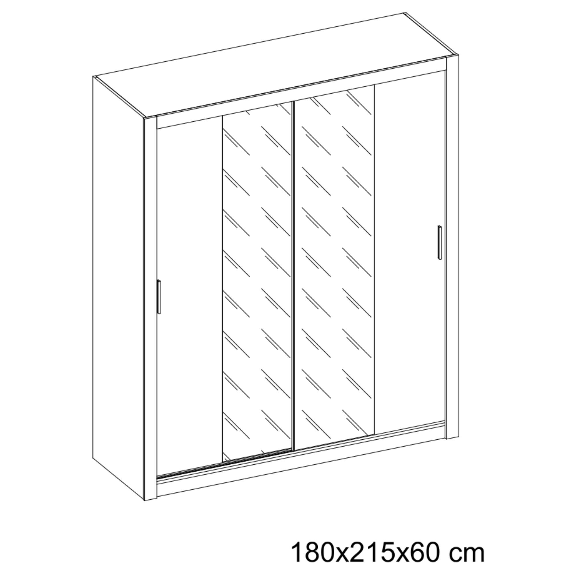 Šatníková skriňa IDEA 03 zaujme na prvý pohľad svojim veľmi praktickým a zároveň dizajnovým prvkom - posuvnými dverami so zrkadlami. Za nimi sa skrýva veľa úložného priestoru členeného na oddiel so šatníkovou tyčou a hornou policou a na oddiel s piatimi policami. Vyrobená je z laminovaného dreveného materiálu a povrchovú úpravu je možné zvoliť z dvoch dostupných variantov - matnej bielej a dekora duba sanremo. Moderný vzhľad skrini dodávajú rúčky vo farbe kovu.