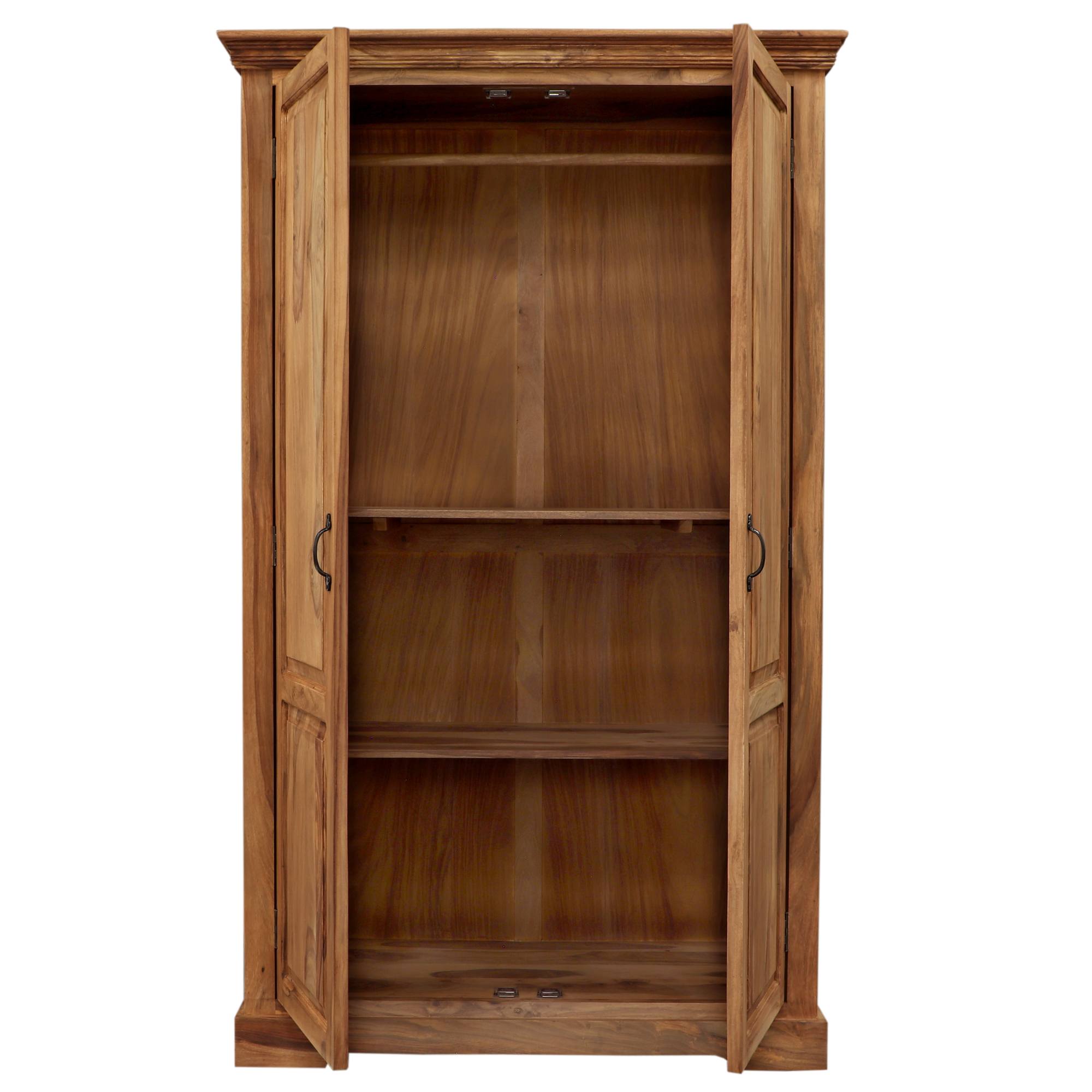 Skriňa je uzatvárateľná párom otočných dverí, ktoré sú na ľahšiu manipuláciu vybavené praktickými, kovovými rúčkami. Vnútorný priestor je vybavený šatníkovou tyčou a 2 vloženými policami. Všetko oblečenie a doplnky tak budú vždy prehľadne usporiadané a budete k nim mať ľahký prístup.