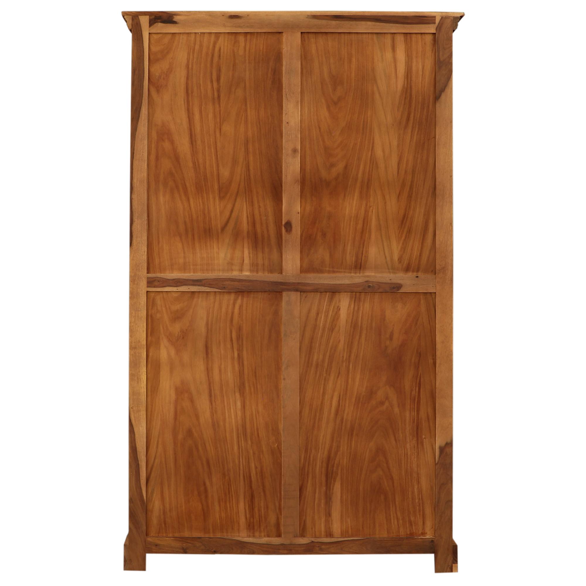 Skriňa je vyrobená z masívneho dreva shishamu, veľmi odolnej exotickej dreviny tiež známej ako palisander. Ten vyniká svojou pevnosťou a výraznou kresbou dreva s unikátnymi farebnými prechodmi, ktoré sa kus od kusa líšia. Každý kus je tak svojim spôsobom úplne jedinečný.