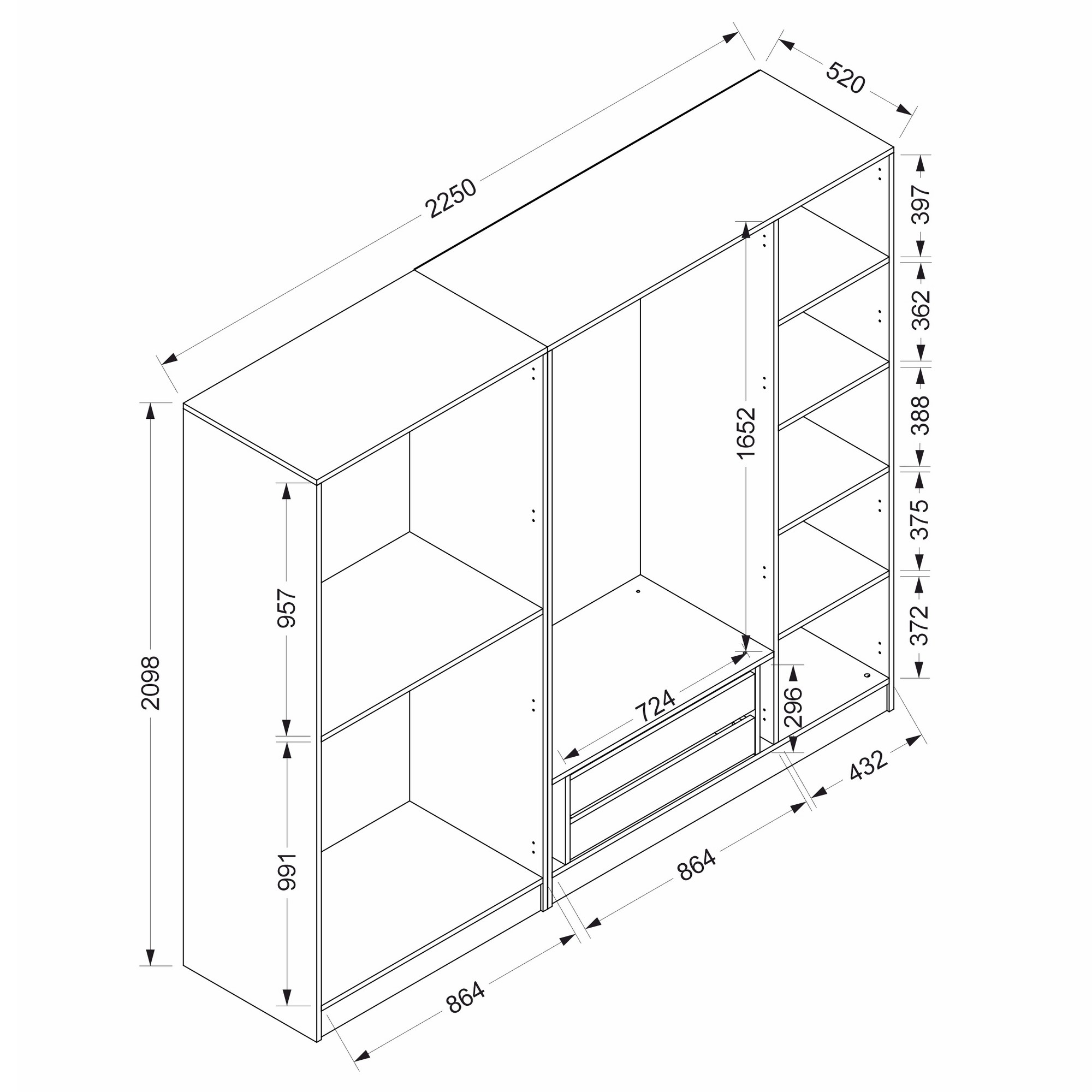 - 3 šatníkové tyče, 2 zásuvky a 5 vložených políc