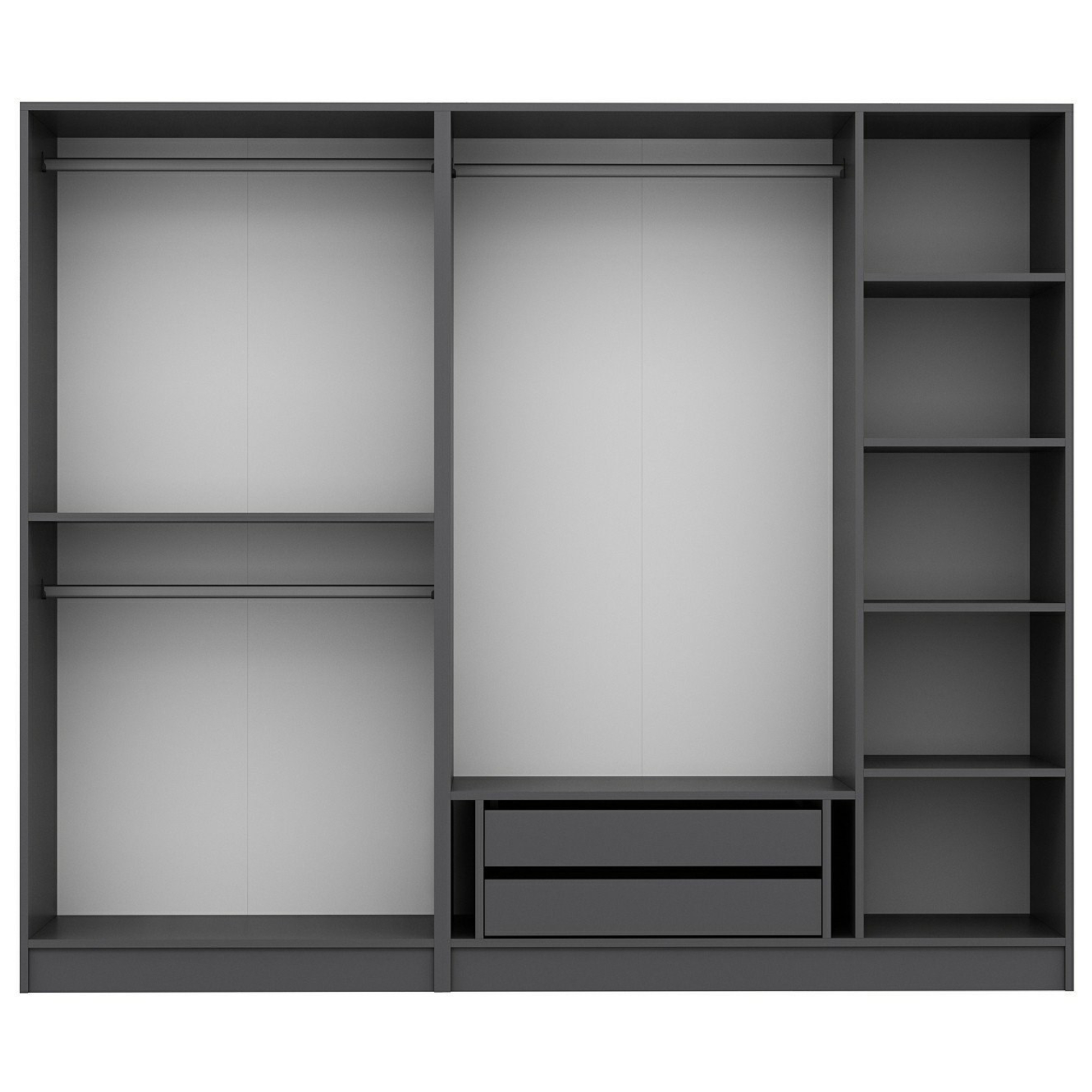 - 3 šatníkové tyče, 5 vložených políc a 2 zásuvky