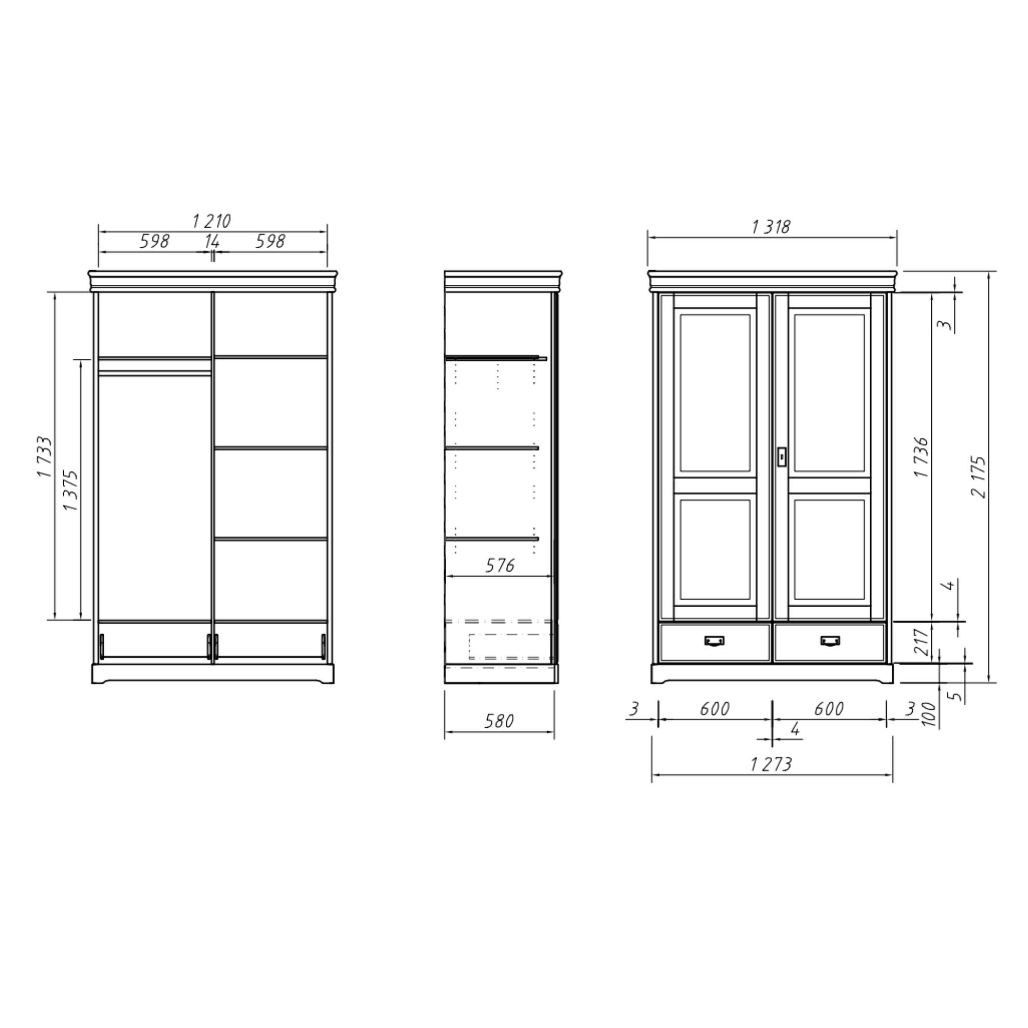 Skriňa je vybavená 2 otočnými dverami umožňujúcimi maximálne využitie vnútorného priestoru. Za ľavými dverami sa nachádza šatníková tyč na zavesenie väčších alebo krčivých kúskov oblečenia a 1 vložená polica nad ňou. Pravá strana obsahuje 3 vložené police ideálne na poskladané oblečenie a ďalší textil. Využiť môžete tiež 2 zásuvky v spodnej časti na oddelenie spodnej bielizne, doplnkov a ďalších drobností.