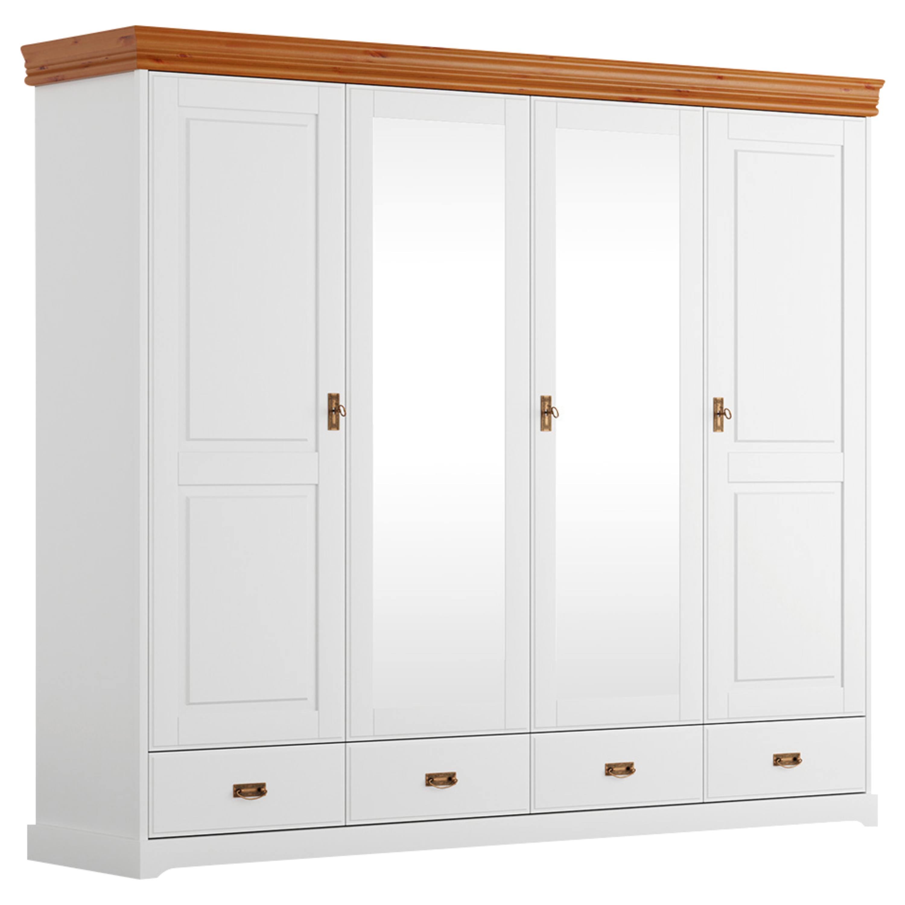 Šatníková skriňa KANIA 4D - biela/borovica