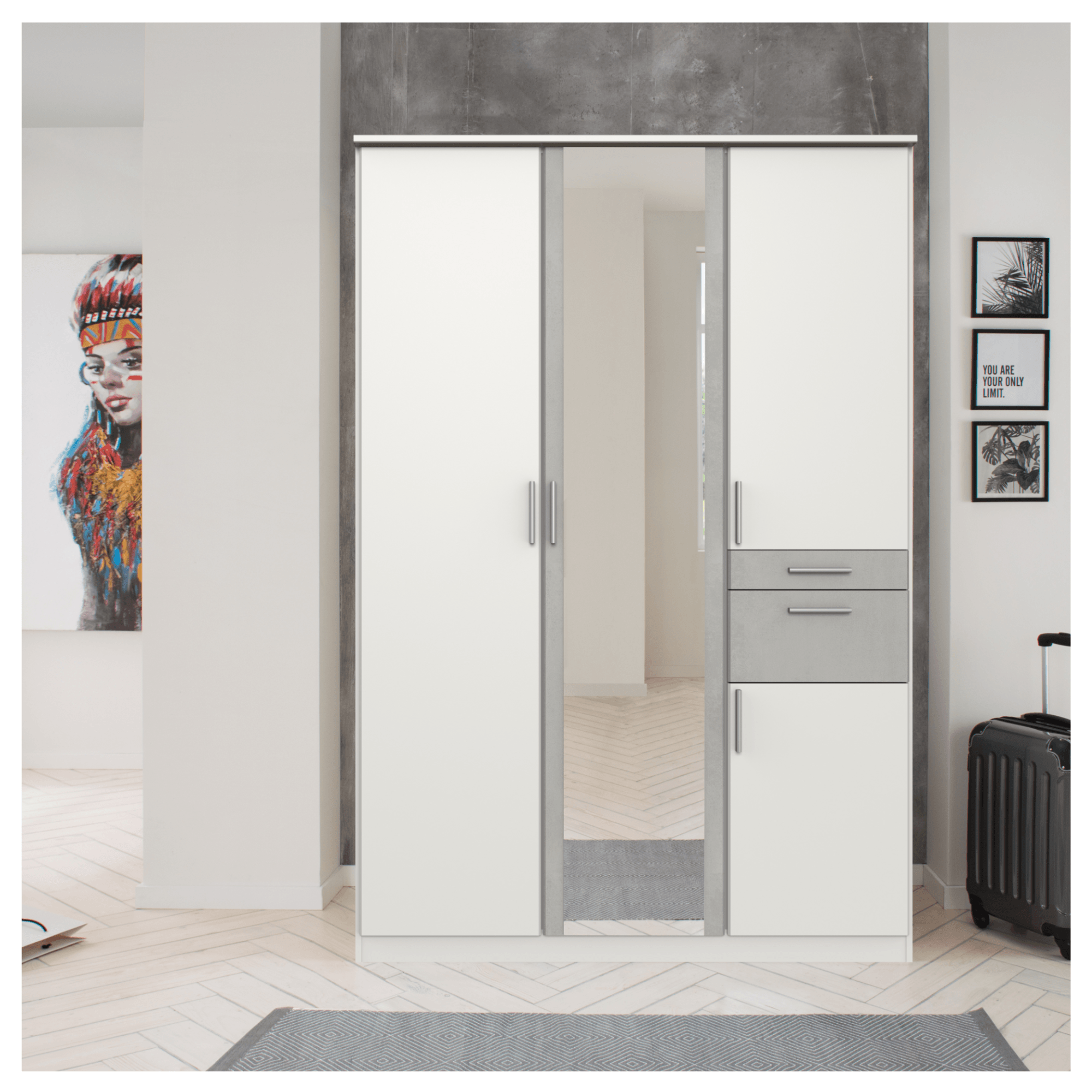 Skriňa je uzatvárateľná pomocou 4 otočných dverí z ktorých jedny sú celé vyplnené zrkadlom a vy si tak môžete kedykoľvek skontrolovať svoj vzhľad. Prvý pár dverí zaberá väčšinu skrine a za sebou ukrýva prepojený vnútorný priestor. Tu sa nachádza široká šatníková tyč, ktorá sa postará o bundy, kabáty, šaty a ďalšie väčšie kusy oblečenia. Nad ňou sa po celej šírke rozprestiera vložená polica. Pravá strana skrine obsahuje 2 menšie dvere, kedy za vrchnými je umiestnená šatníková tyč a za spodnými vložená polica predeľujúca vnútorný priestor. Priestor medzi malými dverami zapĺňajú 2 praktické zásuvky na menšie kúsky oblečenia a doplnky. Všetky predné plochy sú vybavené výraznými rúčkami na jednoduché každodenné používanie. Skriňa je vyrobená z laminovaného dreveného materiálu, ktorý nevyžaduje špeciálnu údržbu.