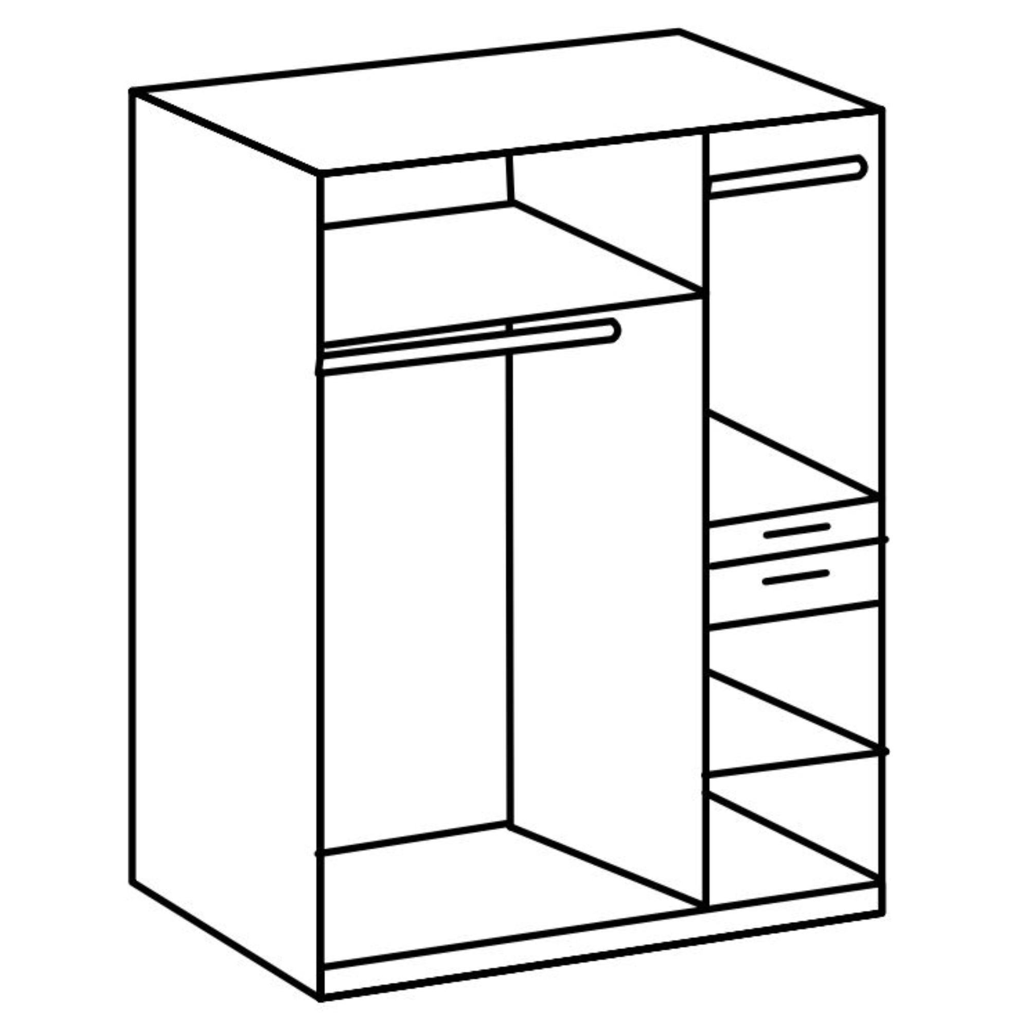 - 2 vložené police, 2 šatníkové tyče, 2 zásuvky