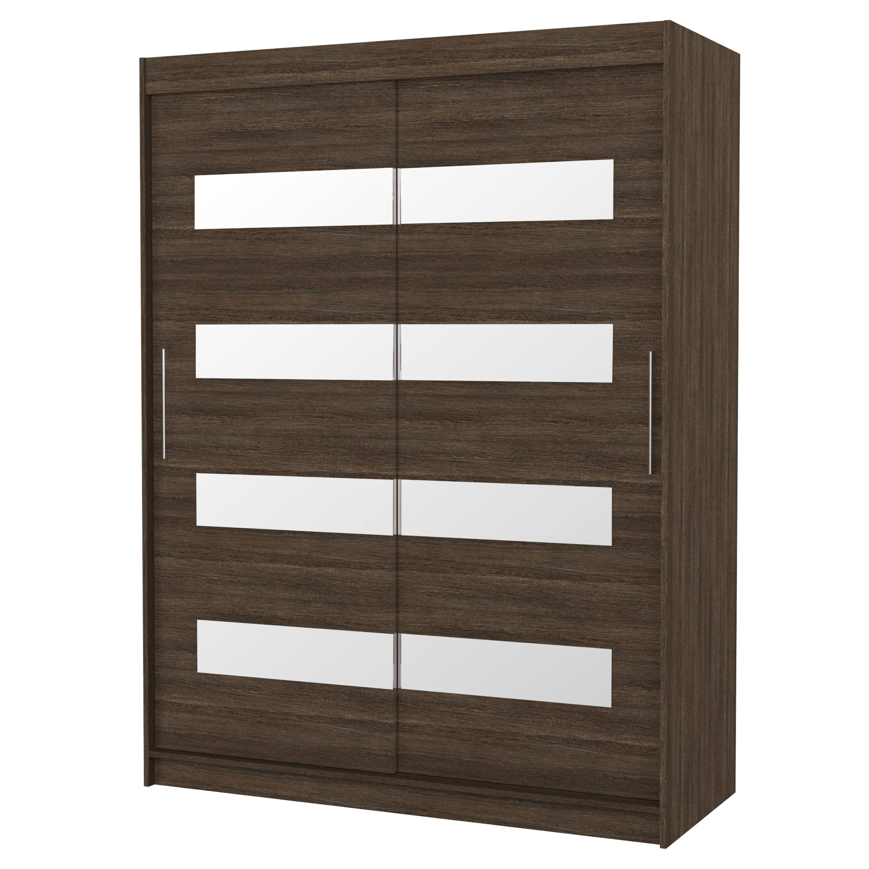 Disponuje posuvnými dverami s hliníkovými vodiacimi lištami pre pohodlné otváranie, ktoré zároveň šetrí miesto. Dvere skrine sú doplnené zrkadlovými pruhmi, ktoré slúžia ako štýlová a zároveň praktická dekorácia.