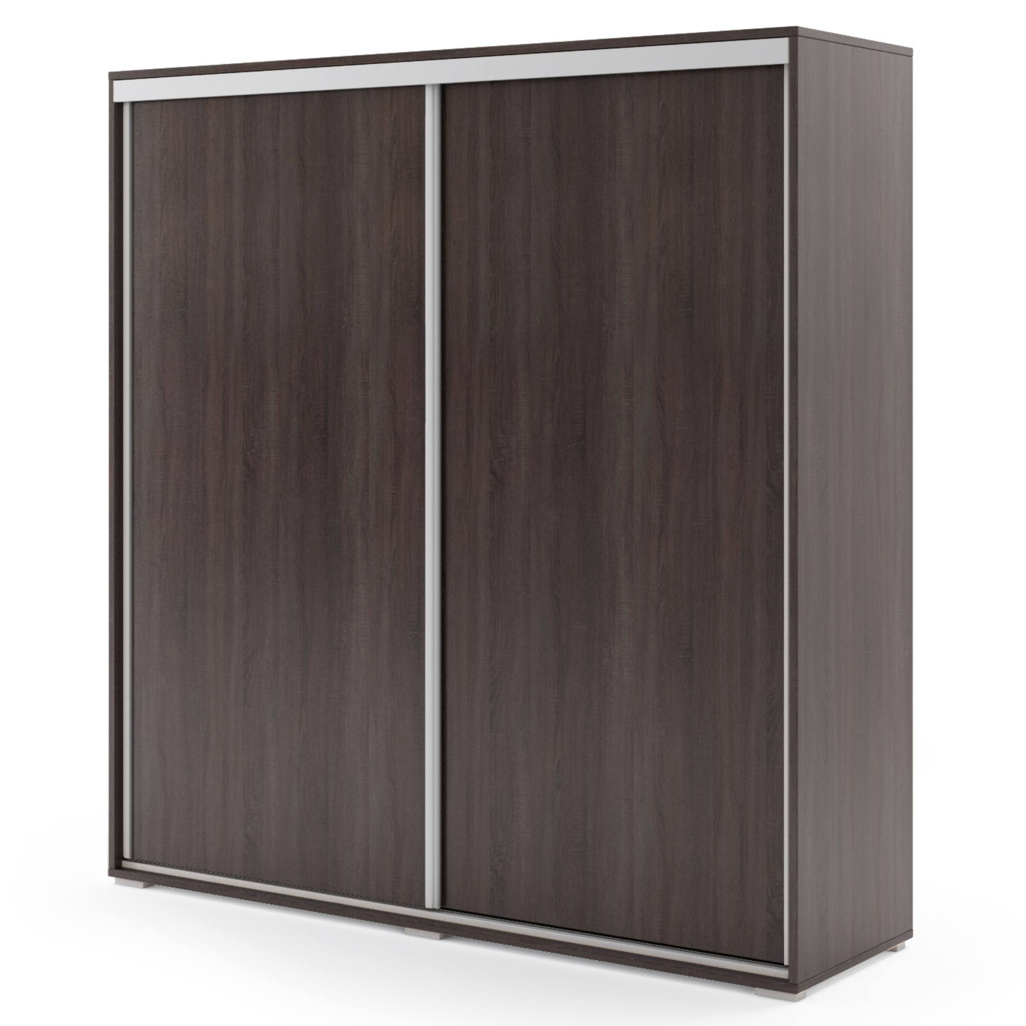 Skriňa je na pravej strane vybavená šatníkovou tyčou a vloženou policou nad ňou, zatiaľ čo na ľavej strane sa nachádzajú 4 vložené police. Skriňu uzatvárajú posuvné dvere, ktoré šetria cenný priestor zvonku aj vo vnútri skrine. Celkový vzhľad dopĺňajú lišty na ľahšiu manipuláciu vyhotovené vo farbe kovu. Skriňa je vyrobená z laminovanej drevotriesky s povrchom nenáročným na údržbu