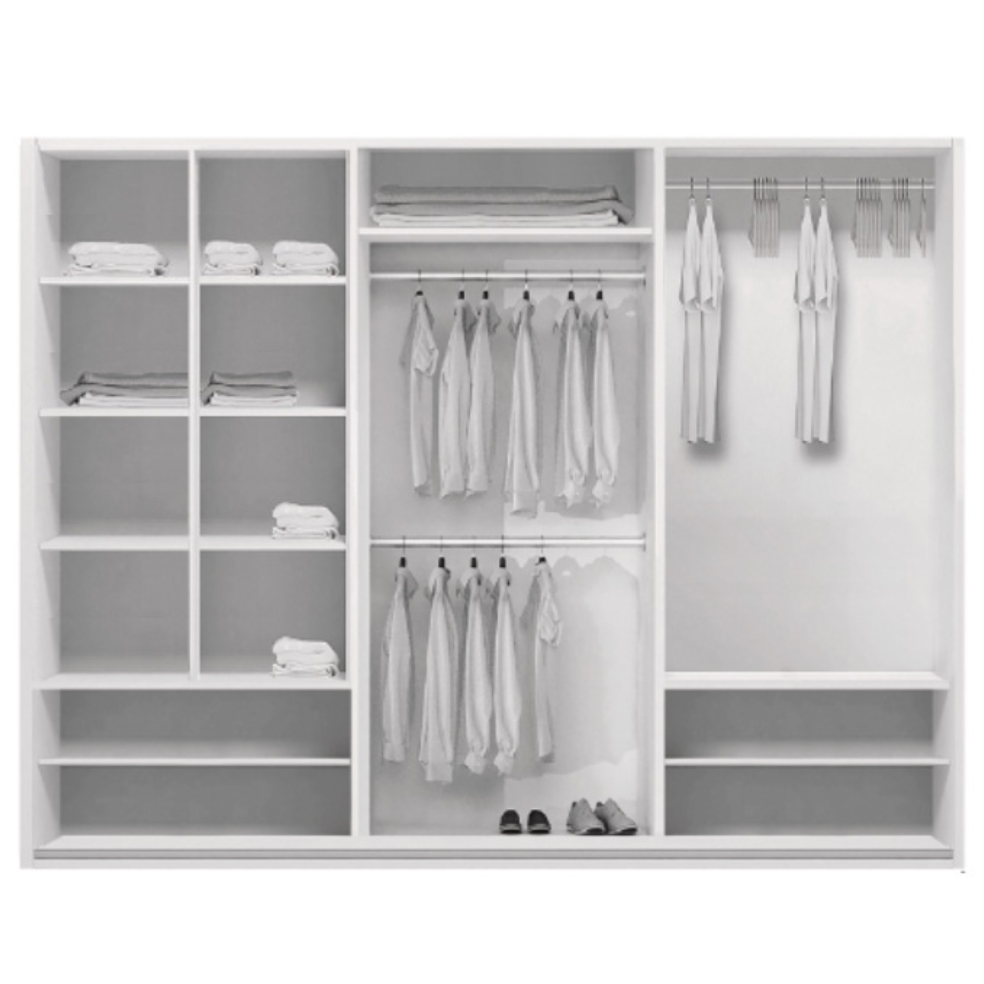 Vďaka posuvnému systému otvárania dverí ušetríte cenné miesto a môžete na maximum využiť priestor zvonku aj vo vnútri skrine. Jedny z dverí sú navyše vyplnené zrkadlom, ktoré opticky zväčší a presvetlí miestnosť a zároveň sa tiež postará o váš bezchybný vzhľad. Jednoduché otváranie dverí umožňujú praktické lišty vyhotovené vo farbe kovu. Vnútorný priestor je rozdelený do 3 oddelených blokov a obsahuje celkom 11 vložených políc a 3 šatníkové tyče. Vyrobená je z laminovanej drevotriesky s povrchom nenáročným na údržbu.