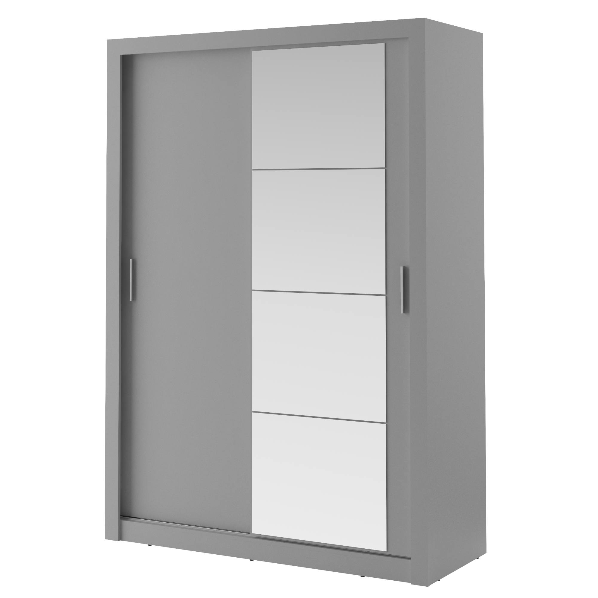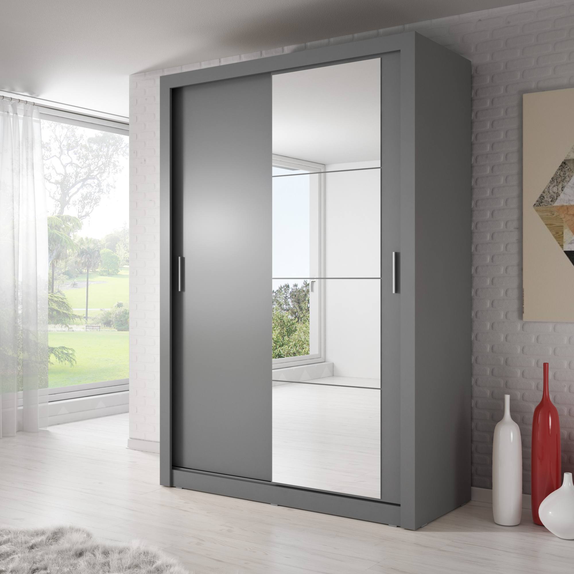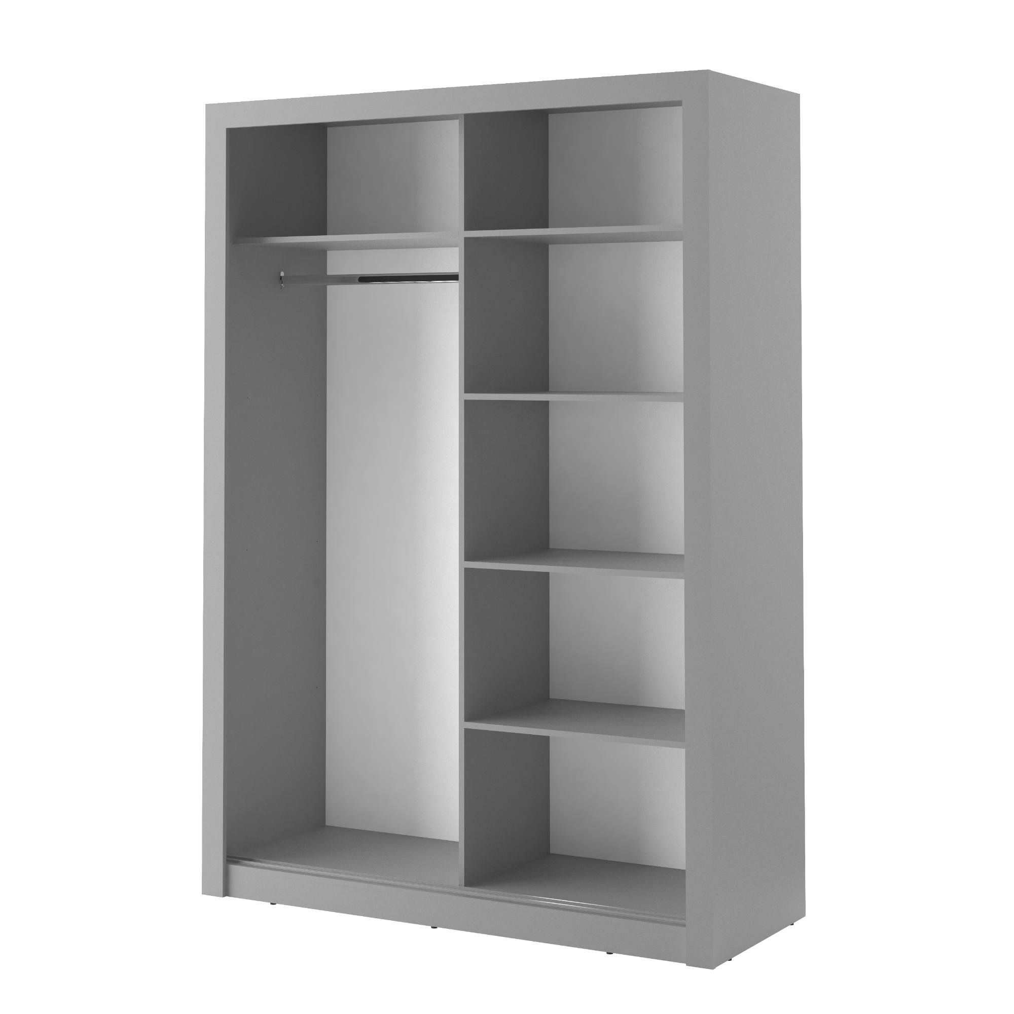 Šatníková skriňa disponuje dvojicou posuvných dverí, z čoho jedny sú zrkadlové. Pomôžu tak doladiť váš outfit a zároveň ušetríte miesto pri otváraní. Dostatočný úložný priestor zaisťuje päť políc a jedna šatníková tyč. Všetko oblečenie tak bude vždy logicky a prehľadne usporiadané. Skriňa je vyrobená z laminovaného dreveného materiálu, ktorý sa vyznačuje ľahkou udržiavateľnosťou aj dlhou životnosťou.