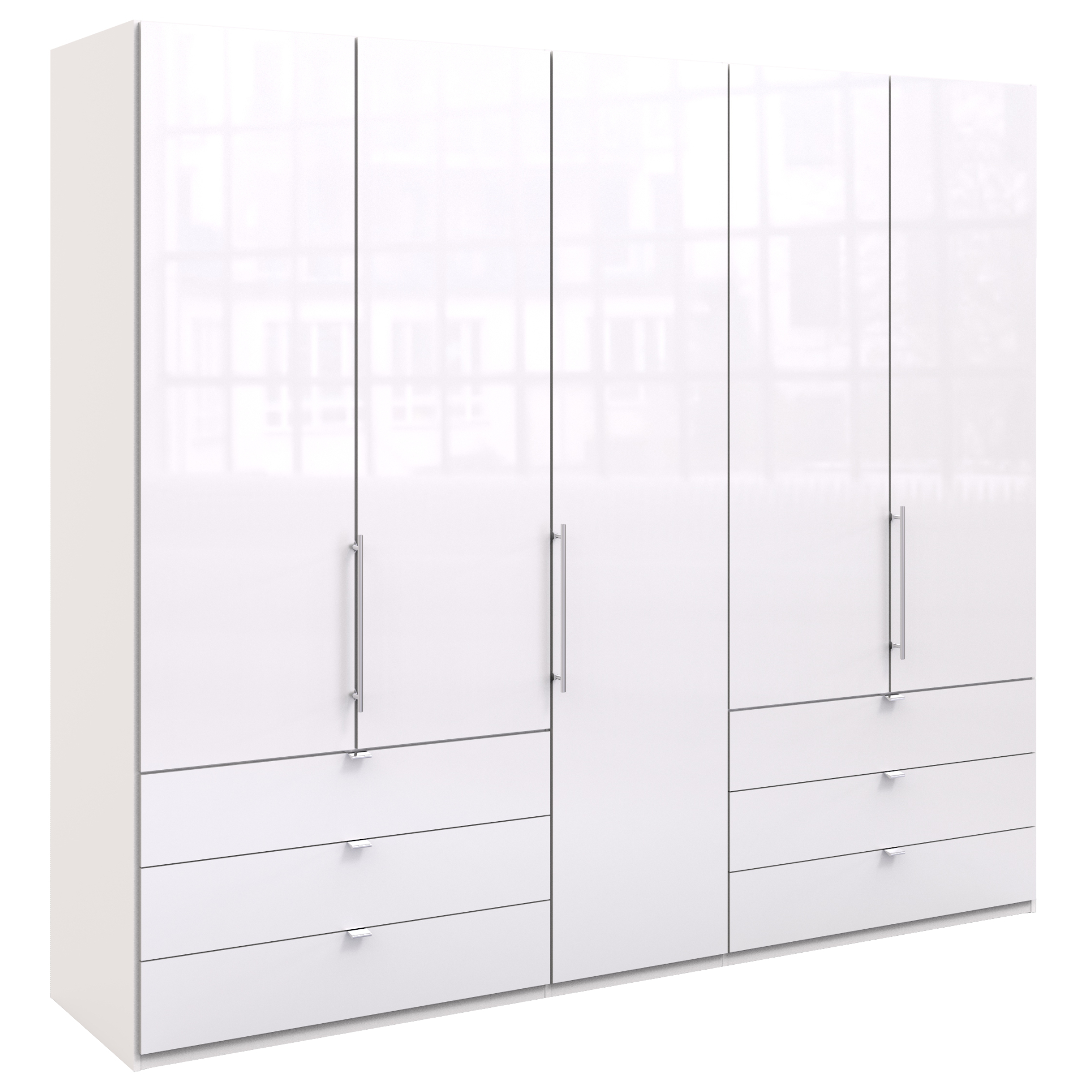 Šatníková skriňa LOFT 647 - biela lesklá, 6 zásuviek, 3-dverová