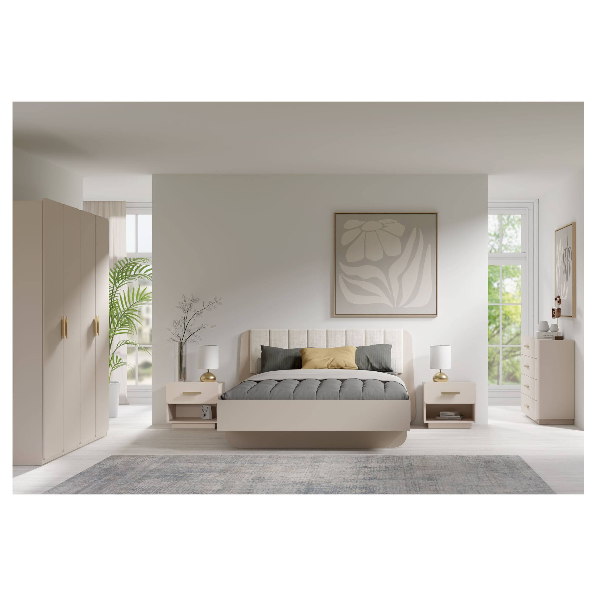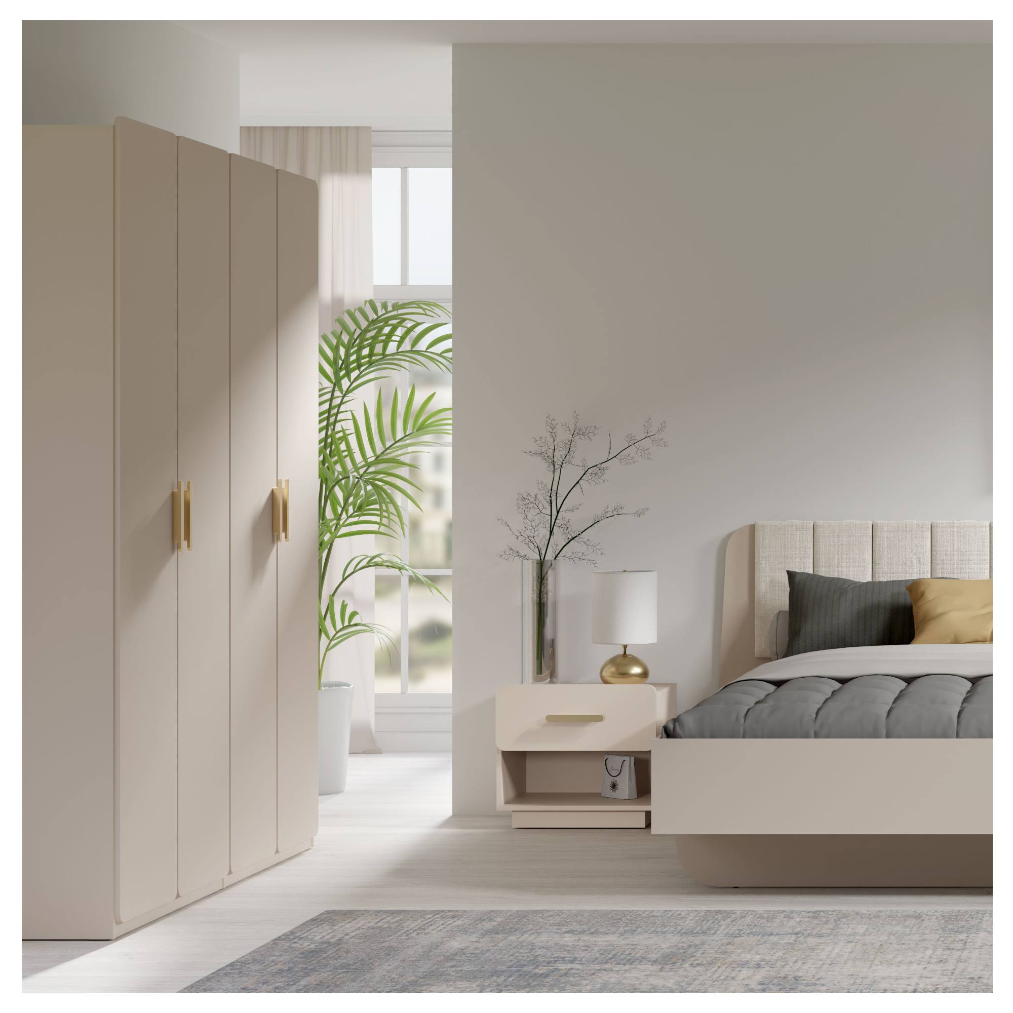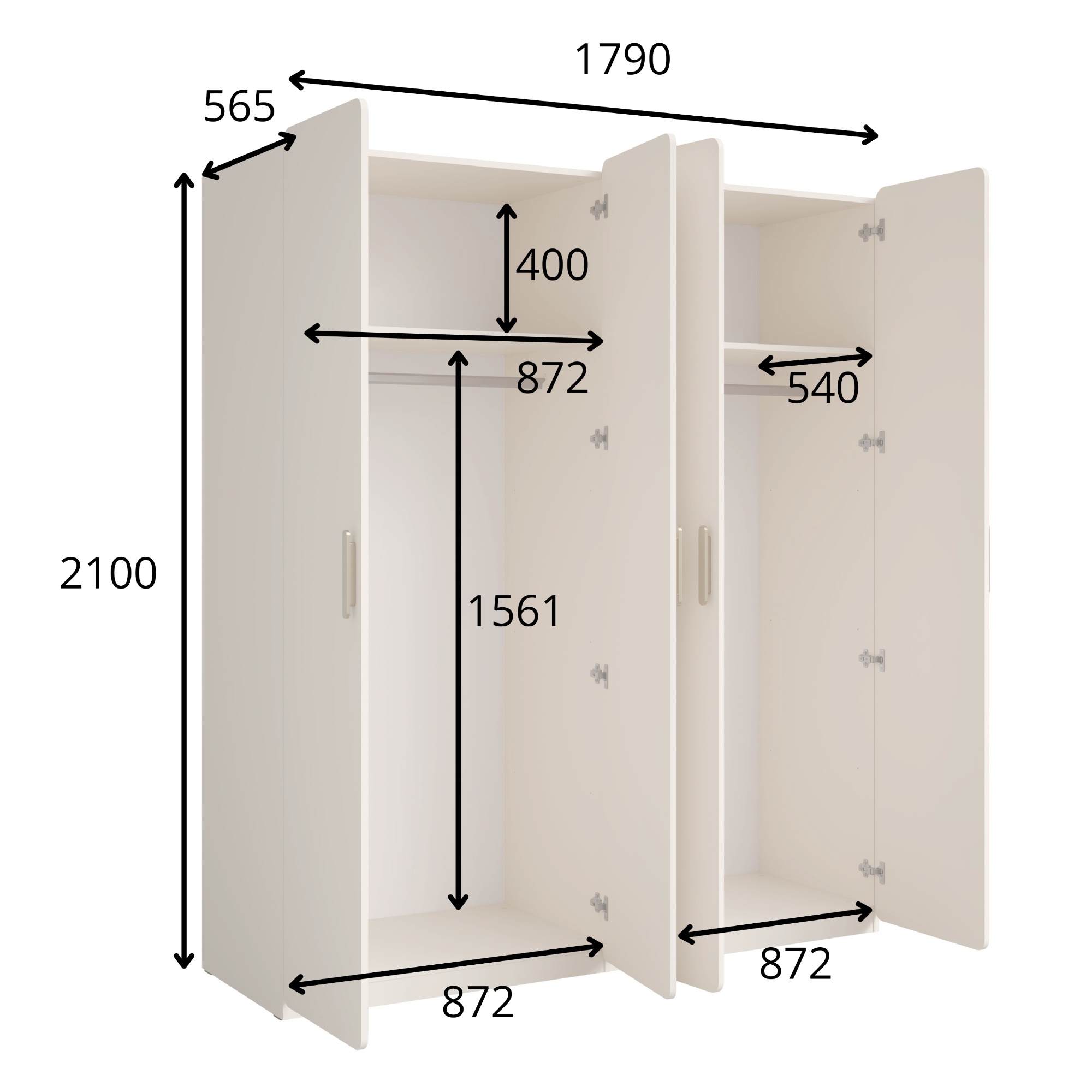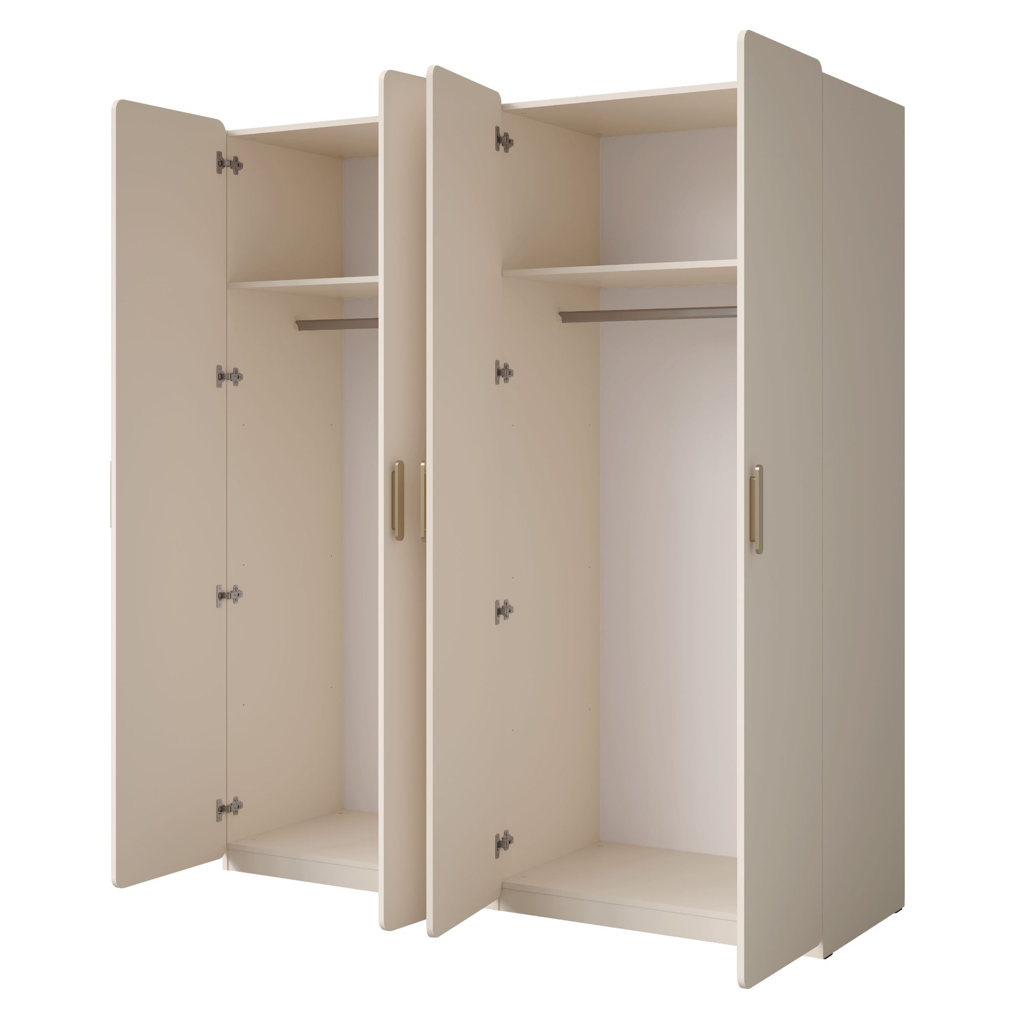 Poskytuje 2 oddelené priestory, ktoré disponujú celkom 4 otočnými dvierkami. Za nimi sa ukrývajú 2 police s nosnosťou 5 kg a 2 šatníkové tyče s nosnosťou 30 kg. Úložného priestoru je teda dostatok na organizované uloženie vášho oblečenia. Dvierka sú vybavené jednoduchými plastovými rúčkami v zlatej farbe, na pohodlné zaobchádzanie. Zaujme svojim zaobleným tvarom, ktoré vytvára minimalistický dizajn skrine. V kombinácii s vyhotovením v pieskovej farbe zapadne do rôznych moderných interiérov. Je vyrobená z laminovaného dreveného materiálu, zaisťujúceho ľahkú údržbu. K tej tiež prispievajú ochranné ABS hrany. Do skrine je možné dokúpiť ďalšie police v baleniach po 3 kusoch.