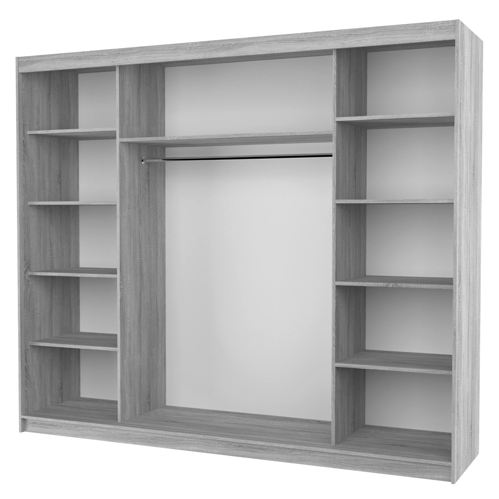 Disponuje posuvnými dverami s hliníkovými vodiacimi lištami pre hladké a pohodlné otváranie. Skriňa je vyrobená z laminovaného dreveného materiálu doplneného ABS hranami. Táto kombinácia zabezpečuje jednoduchú údržbu povrchu.