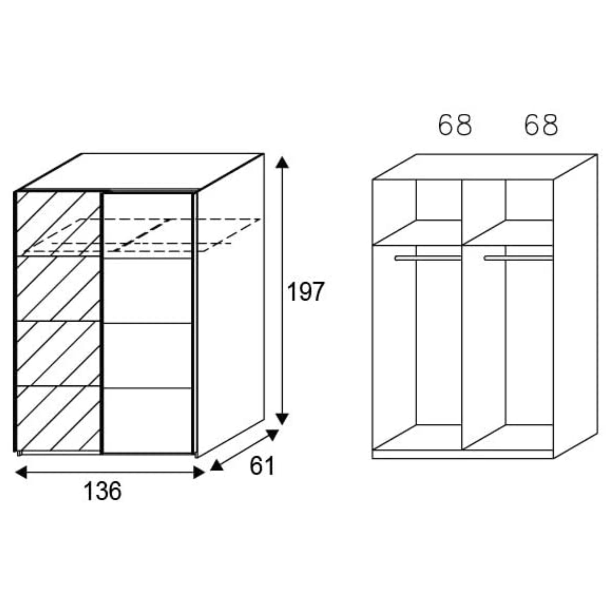 Moderná šatníková skriňa MAHUNY poskytuje dostatok úložného priestoru, ktorý je vo vnútri rozdelený na dve hlavné časti. Vnútri každej z nich nájdete šatníkovú tyč a nad ňou vloženú policu. Hĺbka skrine je 61 cm. Veľkou výhodou skrine sú jej praktické posuvné dvere, ktoré nezaberajú zbytočne miesto do priestoru pri ich otvorení. Určite oceníte zrkadlo z vonkajšej strany skrine, ktoré pokrýva celú jednu časť dverí a zároveň opticky zväčší váš interiér. Kvalitný povrch zaručuje nenáročnú údržbu a dlhú životnosť.