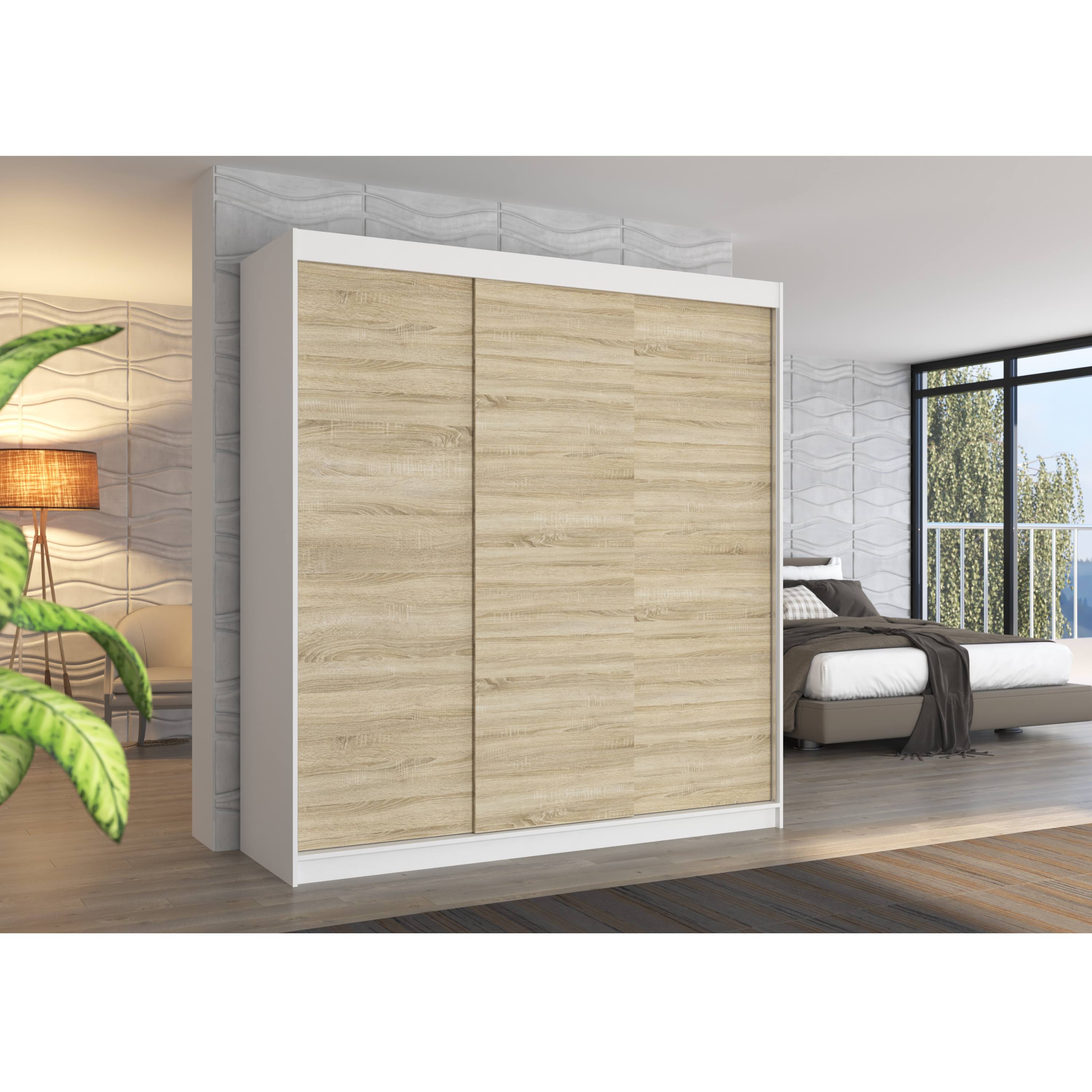 Šatníková skriňa MANOL - biela/dub sonoma