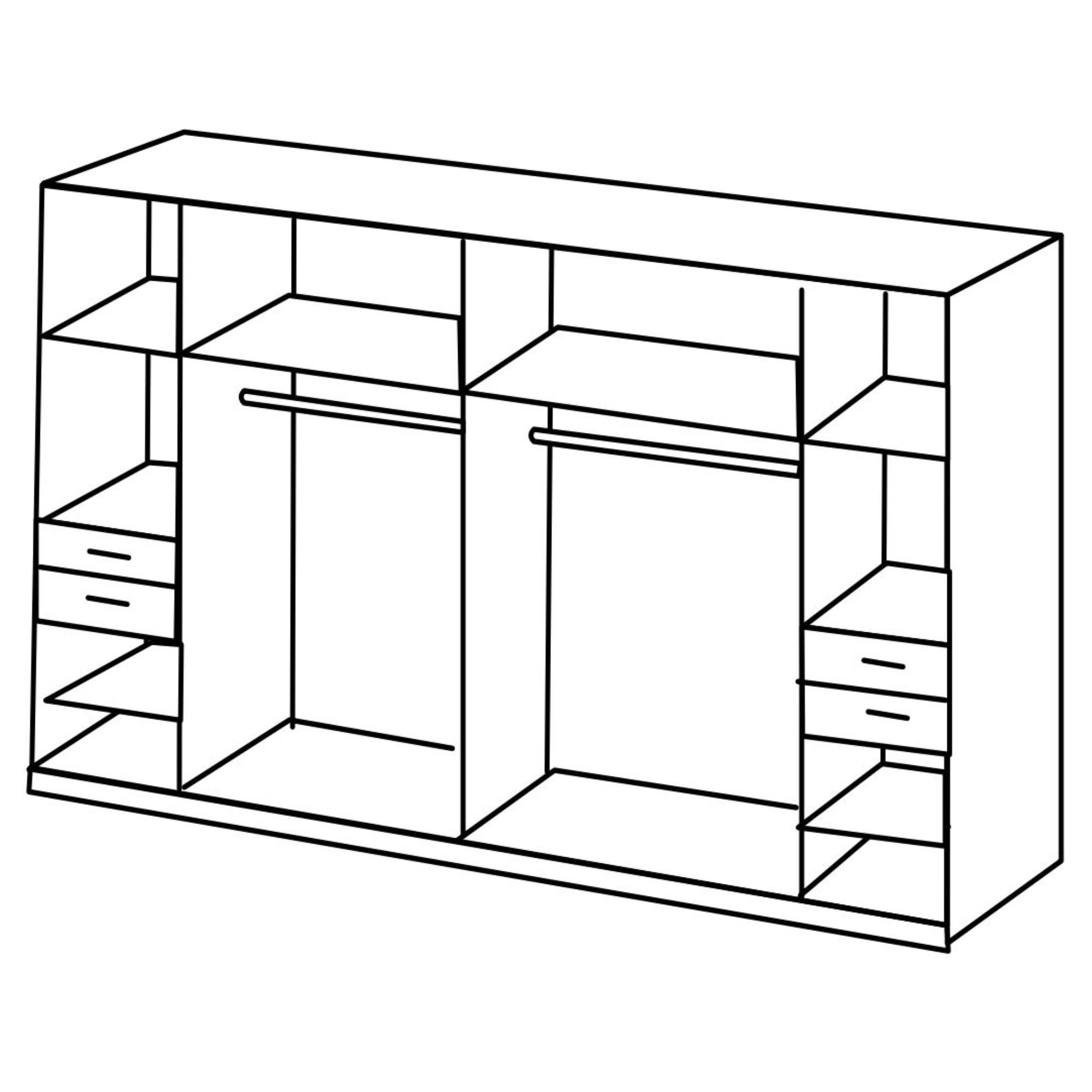 - 6 vložených políc, 2 šatníkové tyče a 4 zásuvky