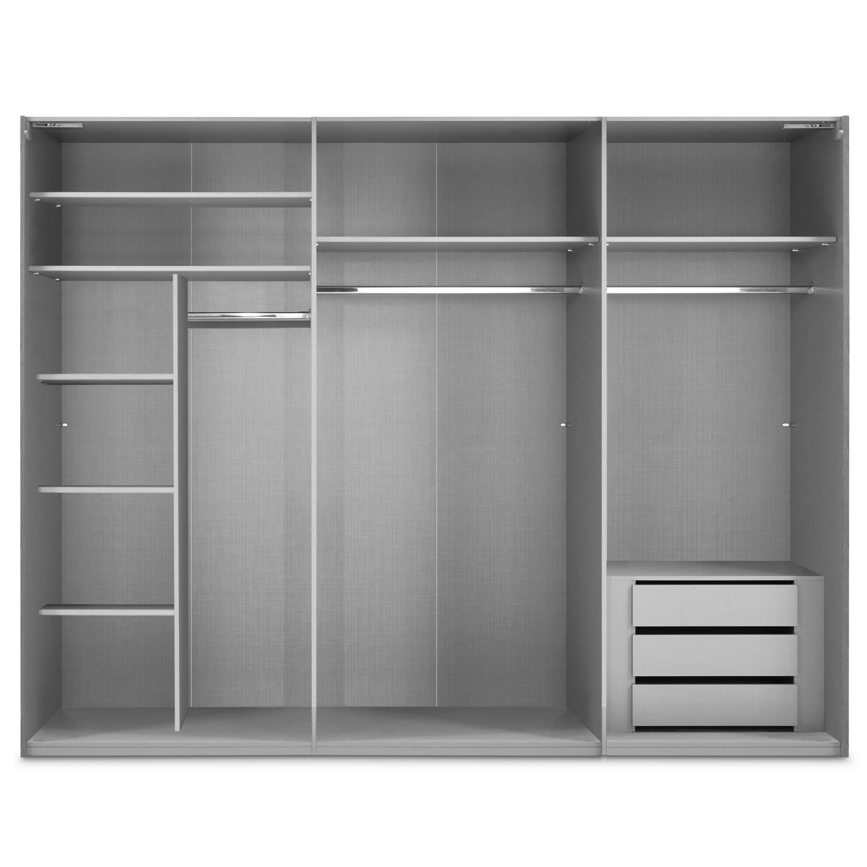 - 7 políc, 3 šatníkové tyče a 3 vnútorné zásuvky