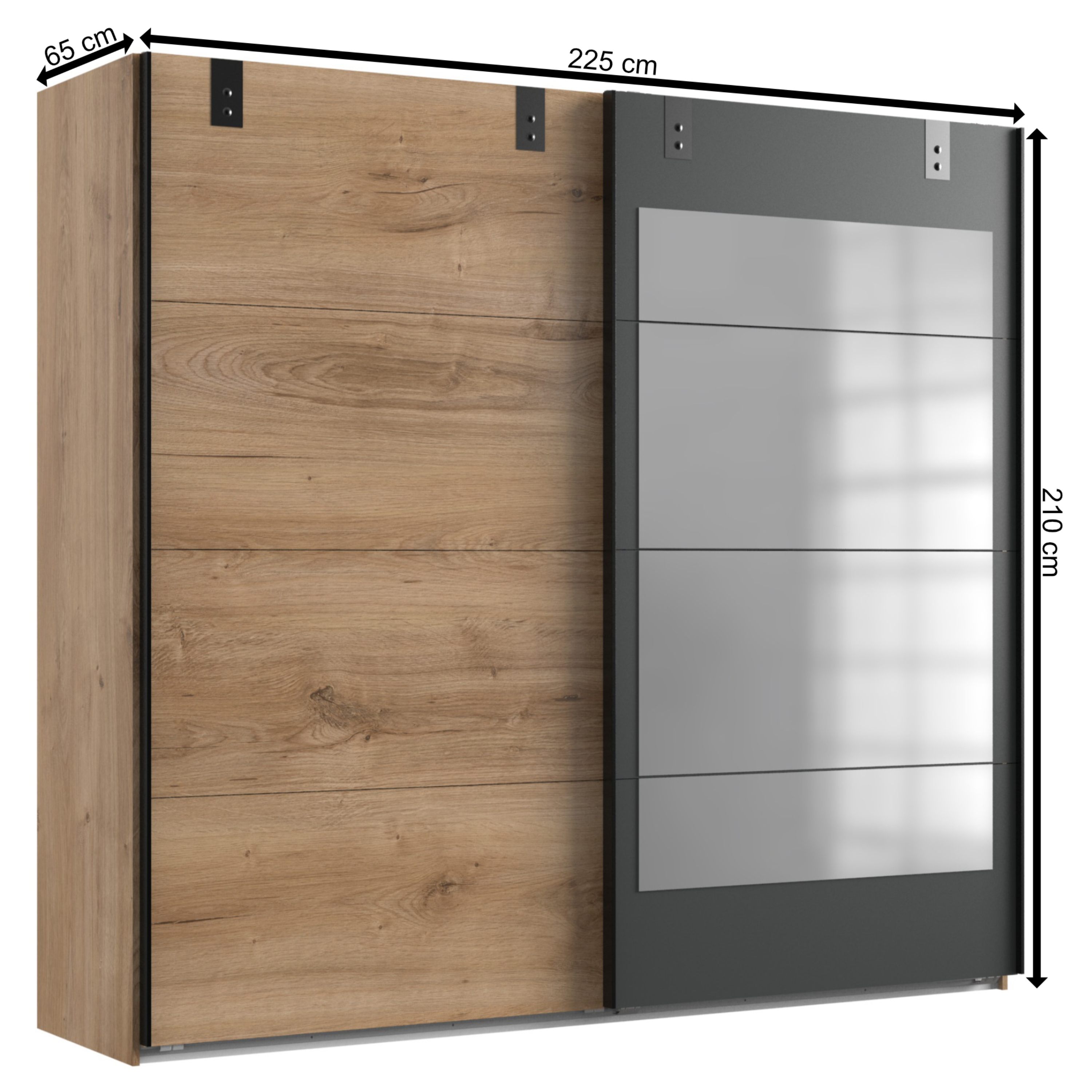 Šatníková skriňa MARION - doskový dub/grafit, šírka 225 cm, zrkadlo