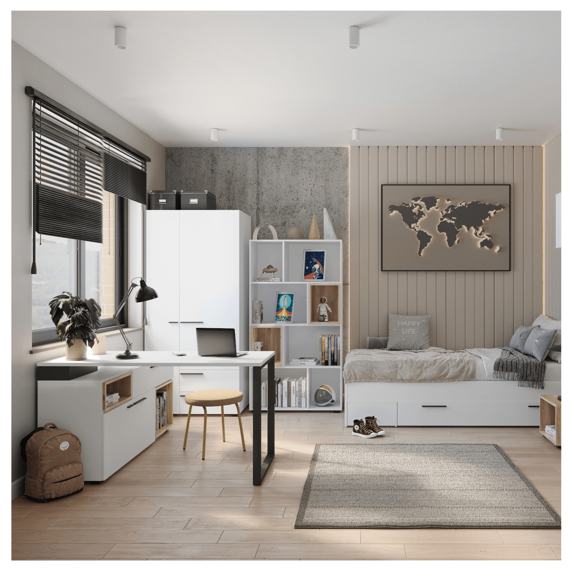 - 6 vložených políc, 1 šatníková tyč a 2 zásuvky