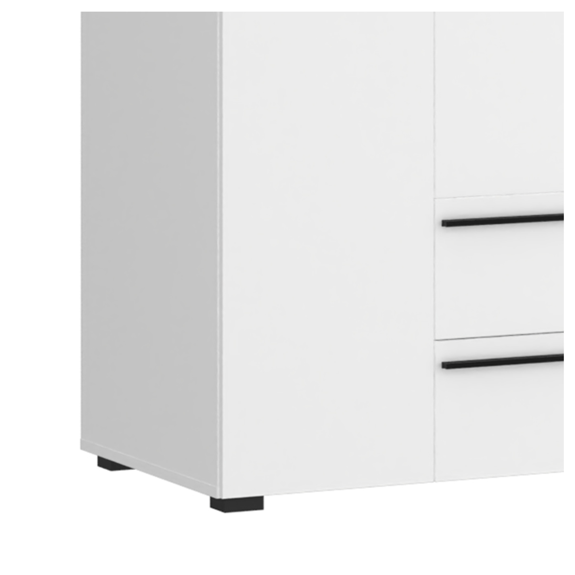 Šatníková skriňa MARLOW v jednoduchej bielej farbe s kontrastnými rúčkami utvára minimalistický atraktívny vzhľad a dokonale tak doplní moderné interiéry.