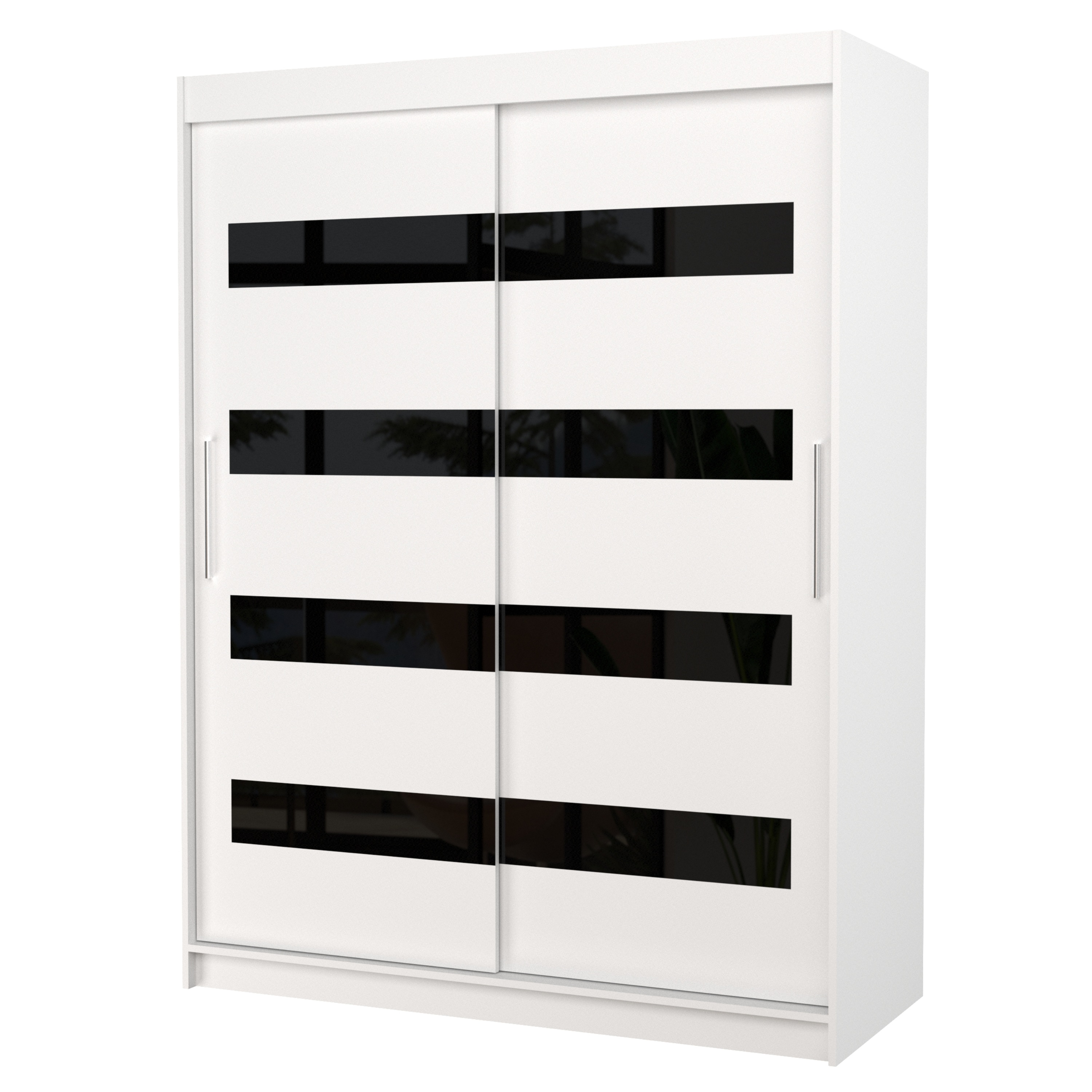 Vnútorné vybavenie pozostáva celkom z 5 políc a 1 šatníkovej tyče na uloženie rôznych typov odevov. Skriňu uzatvárajú posuvné dvere, ktoré šetria cenný priestor vo vnútri aj mimo skriňu. Korpus skrine je vyrobený z laminovaného dreveného materiálu doplneného o ABS hrany chrániace pred mechanickým poškodením.