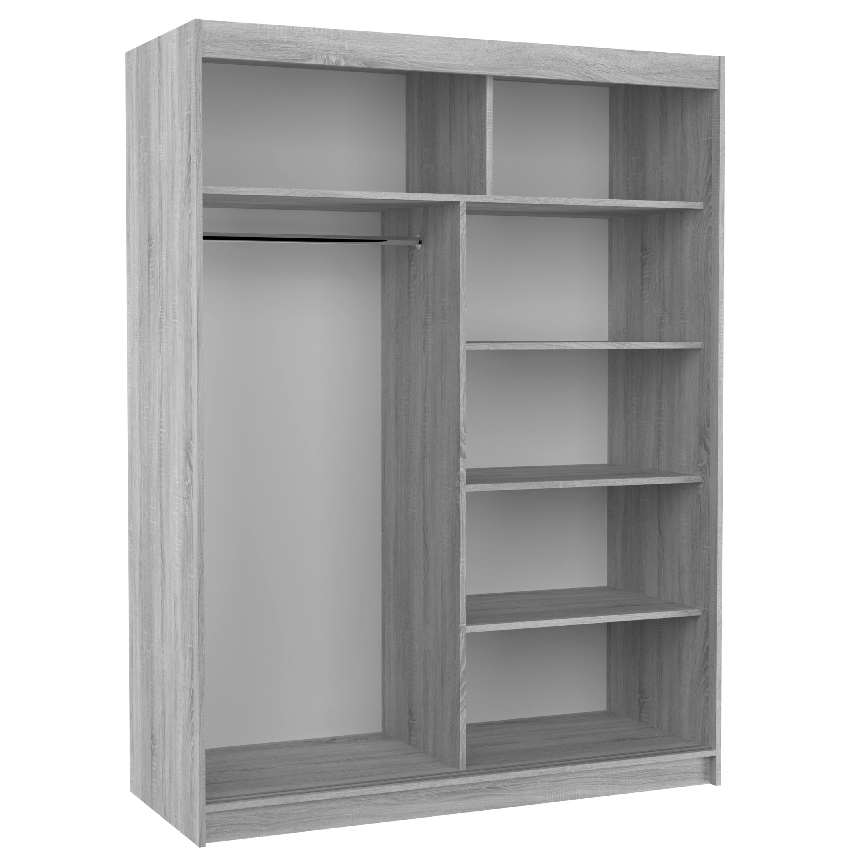 Vnútorné vybavenie pozostáva celkom z 5 políc a 1 šatníkovej tyče na uloženie rôznych typov odevov. Skriňu uzatvárajú posuvné dvere, ktoré šetria cenný priestor vo vnútri aj mimo skriňu. Korpus skrine je vyrobený z laminovaného dreveného materiálu doplneného o ABS hrany chrániace pred mechanickým poškodením.