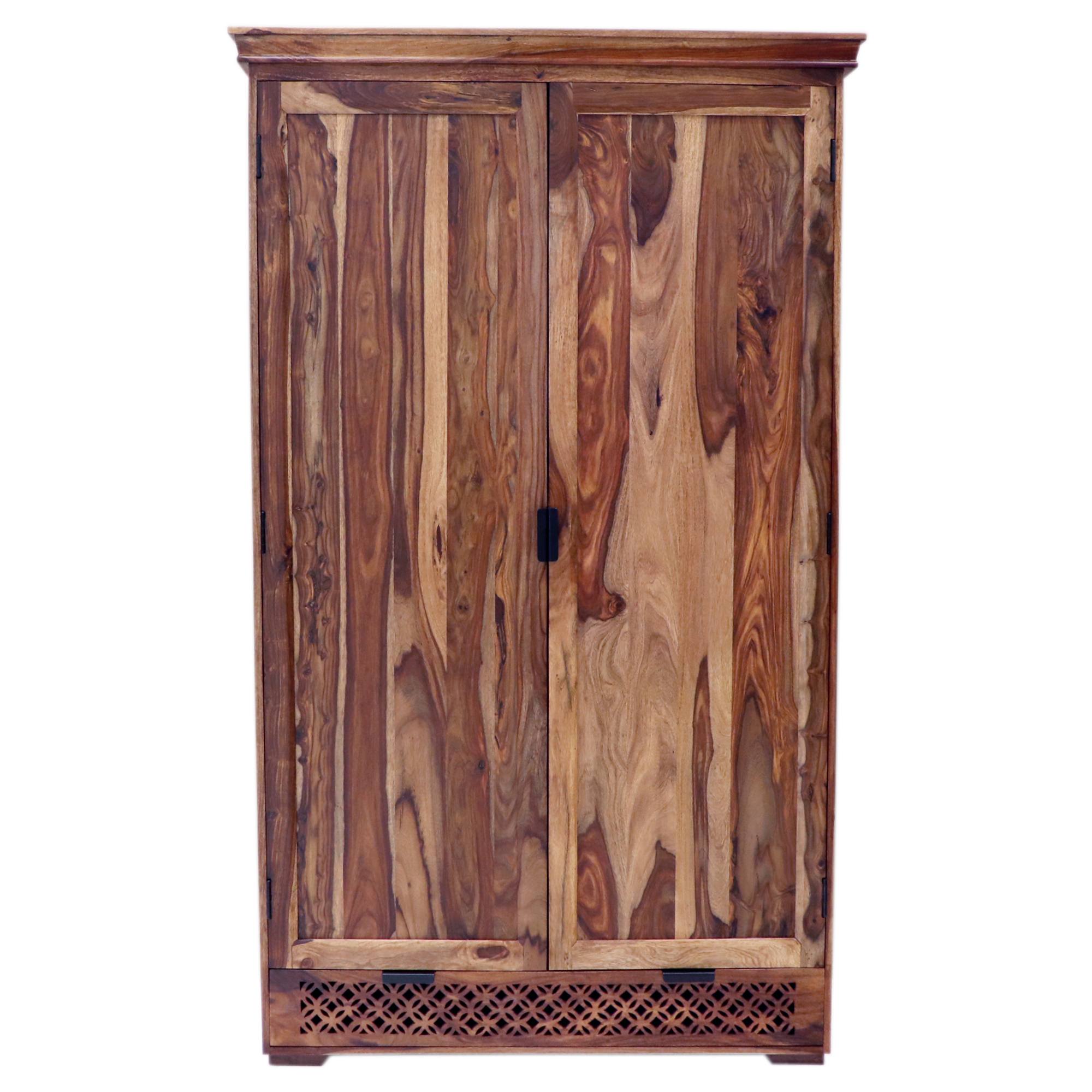 Je vyrobená z masívneho palisandrového dreva s charakteristicky tmavou farbou a krásnou výraznou kresbou, ktorú ešte viac zvýrazňuje morená povrchová úprava. Tá vytvára jeho orientálny dizajn a prináša do interiéru prírodný nádych. Vďaka unikátnej kresbe je každý kus originál. Palisander sa vyznačuje svojou pevnosťou a tvrdosťou, ktoré zaisťujú jej stabilnú konštrukciu. Svojou výškou 2 m poskytne dostatok priestoru a bezpečne uchová vaše oblečenie. Disponuje 1 policou a 1 šatníkovou tyčou, ktoré sa ukrývajú za otočnými dvierkami. V spodnej časti sa nachádza 1 zásuvka s vyrezávanými detailmi. Všetko je doplnené čiernymi úchytkami pre pohodlnú manipuláciu.
