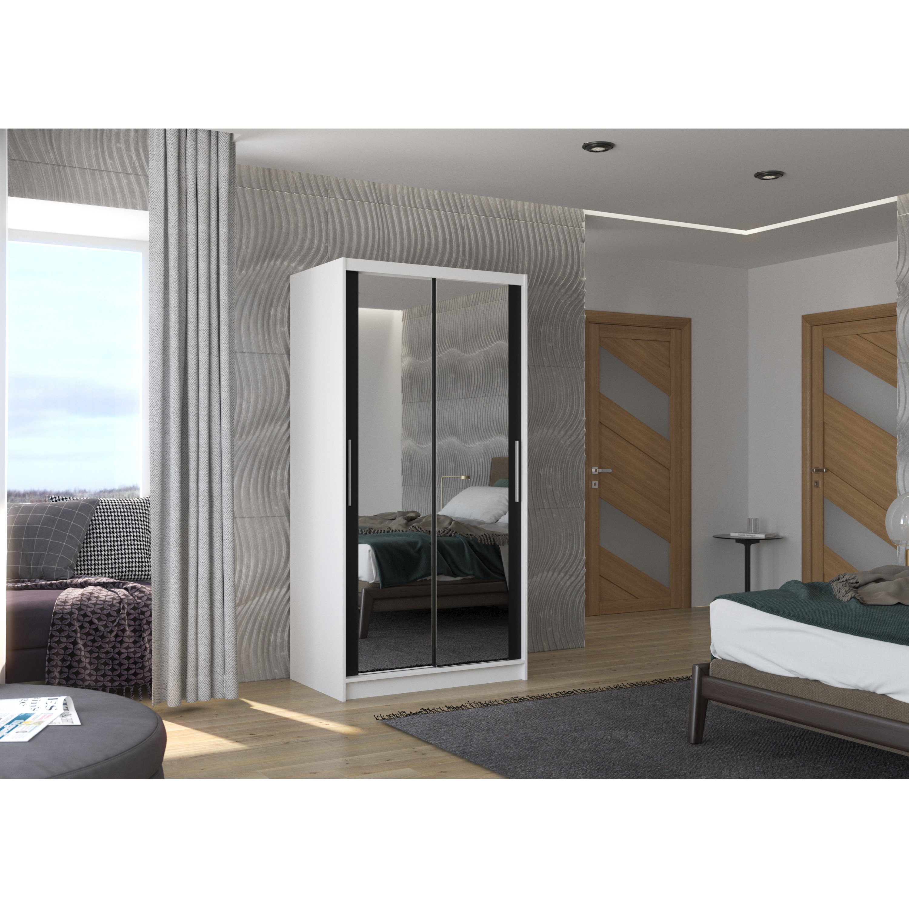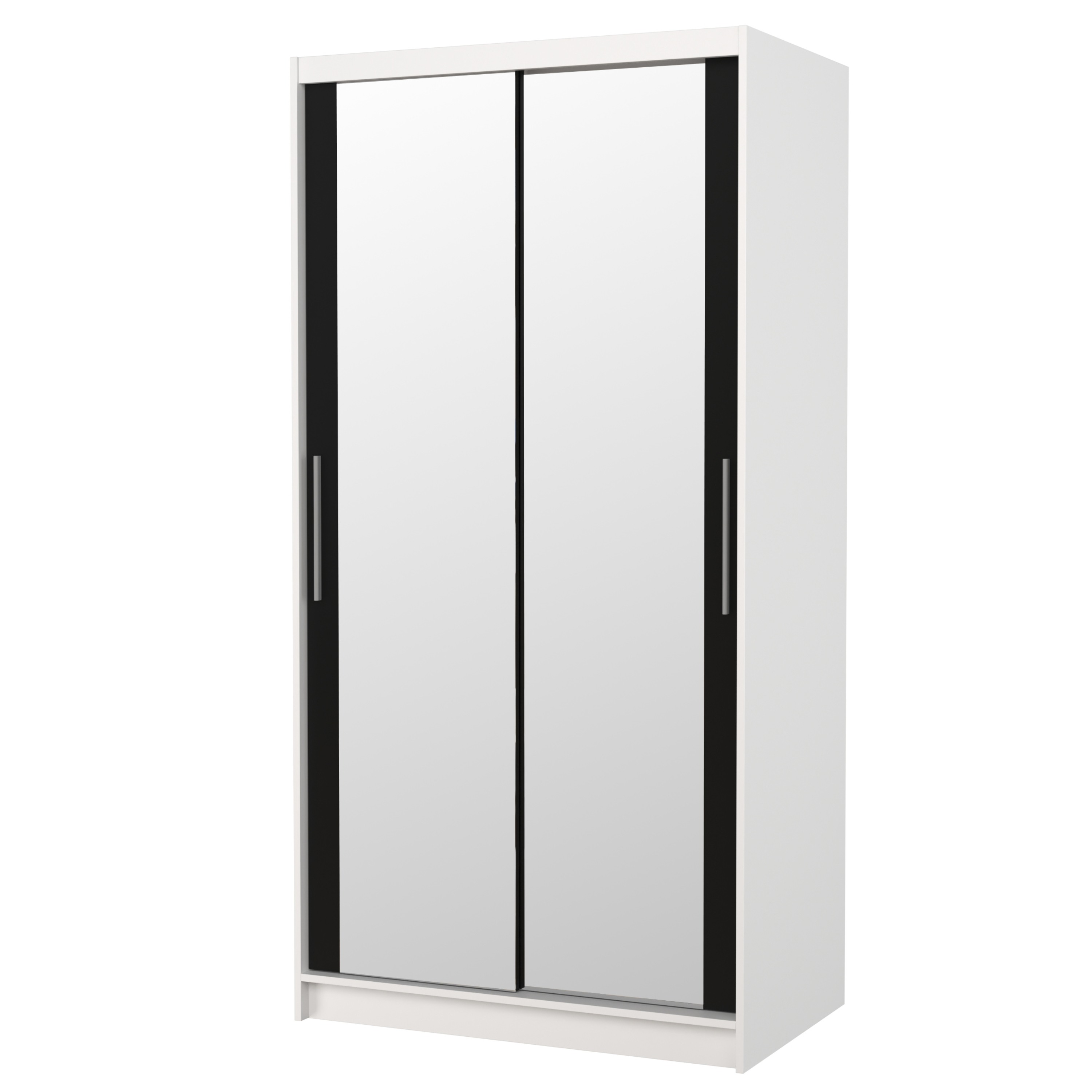 Skriňa je vybavená párom posuvných dverí, ktorých otváranie uľahčujú výrazné úchyty. Súčasťou dverí sú aj praktické zrkadlové plochy, vďaka ktorým si môžete kedykoľvek upraviť svoj vzhľad. Vnútorný priestor je vybavený celkovo 4 policami na prehľadné uloženie poskladaného oblečenia alebo aj sezónnych doplnkov, a tiež šatníkovou tyčou, ktorá je ideálna na zavesenie objemných alebo krčivých odevov. Skriňa je vyrobená z laminovaného dreveného materiálu doplneného o ABS hrany, ktoré chránia pred mechanickým poškodením. Vďaka svojej kompaktnej veľkosti je skvelou voľbou aj do menších interiérov.