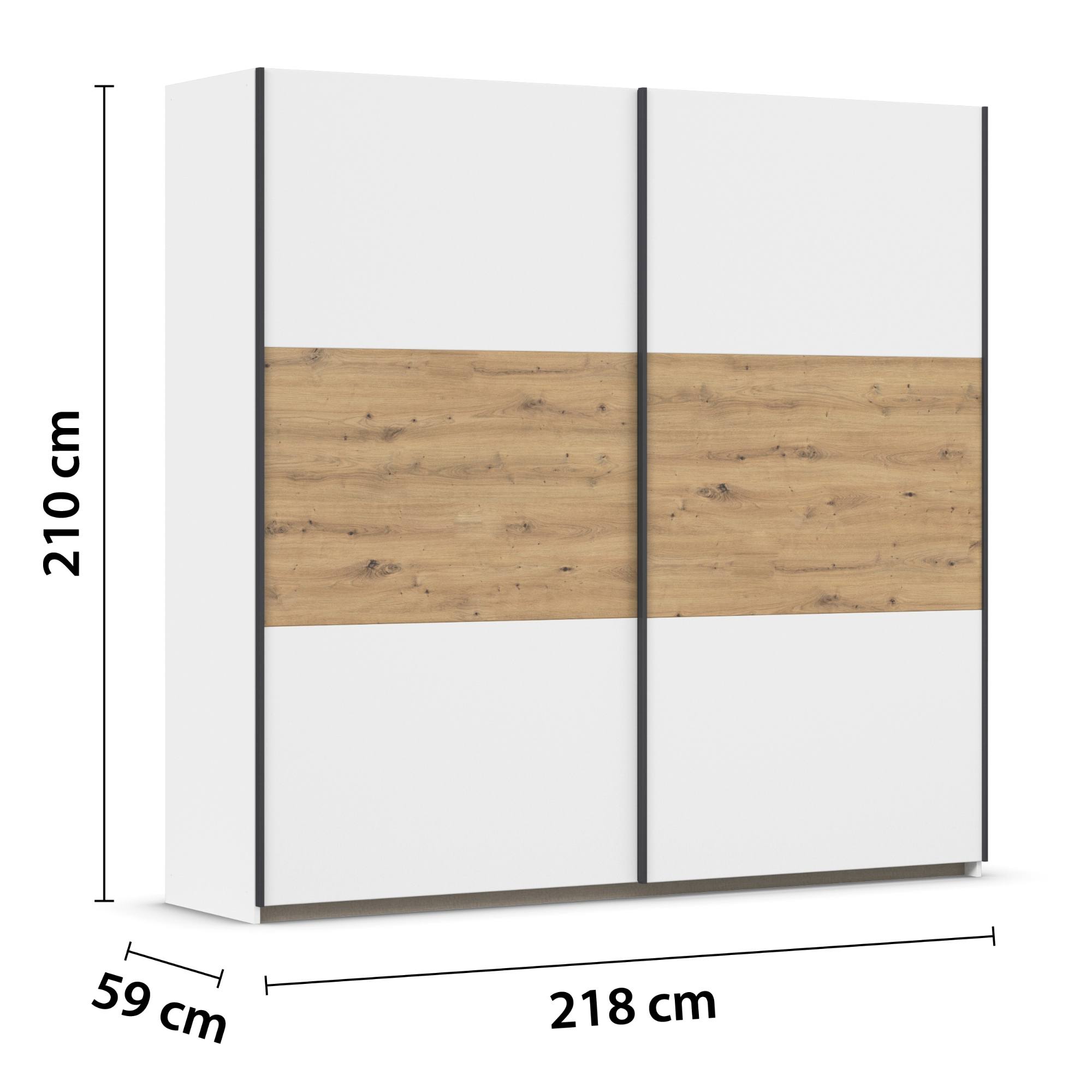Šatníková skriňa NOE - alpská biela/dub artisan, šírka 218 cm