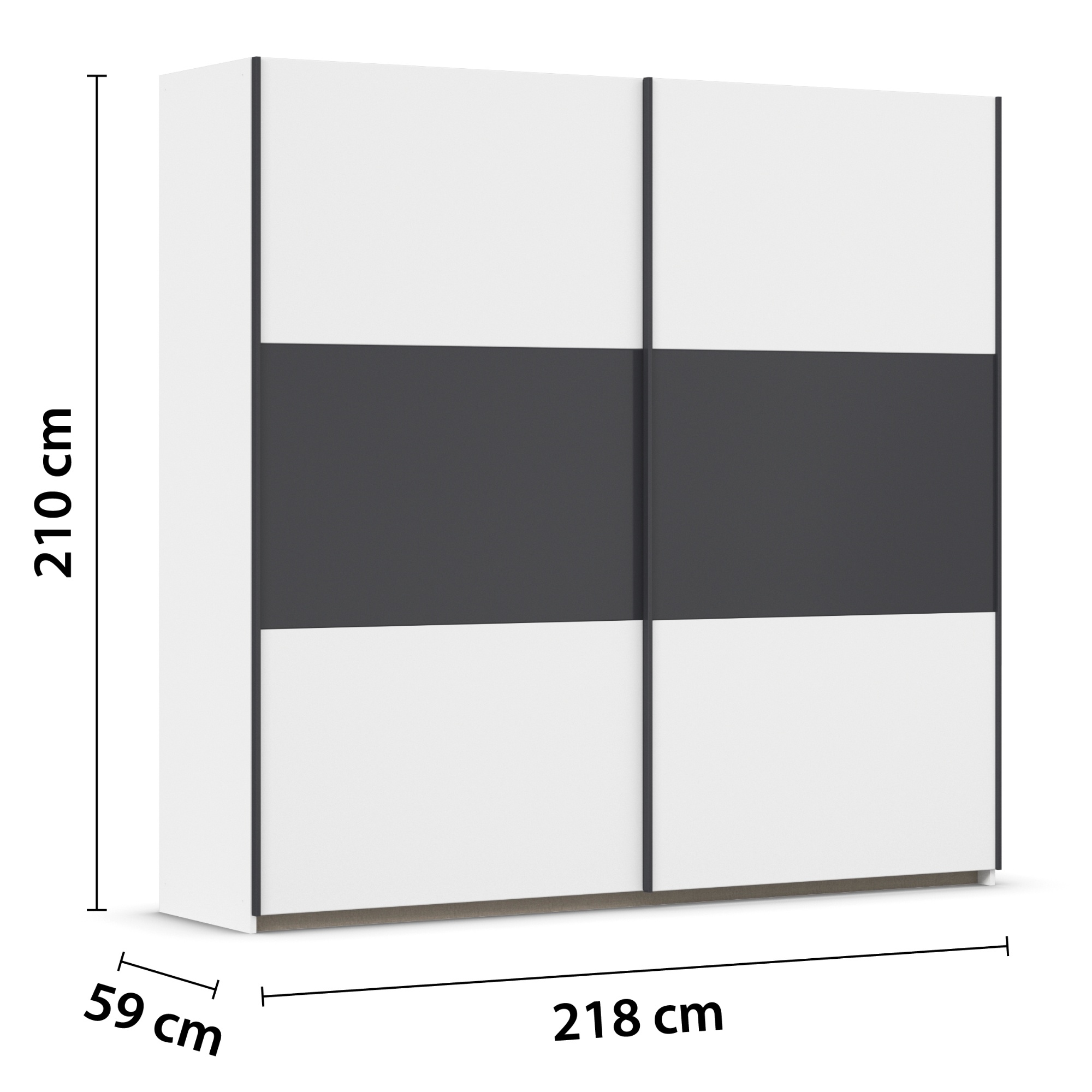 Šatníková skriňa NOE - alpská biela/sivá, šírka 218 cm