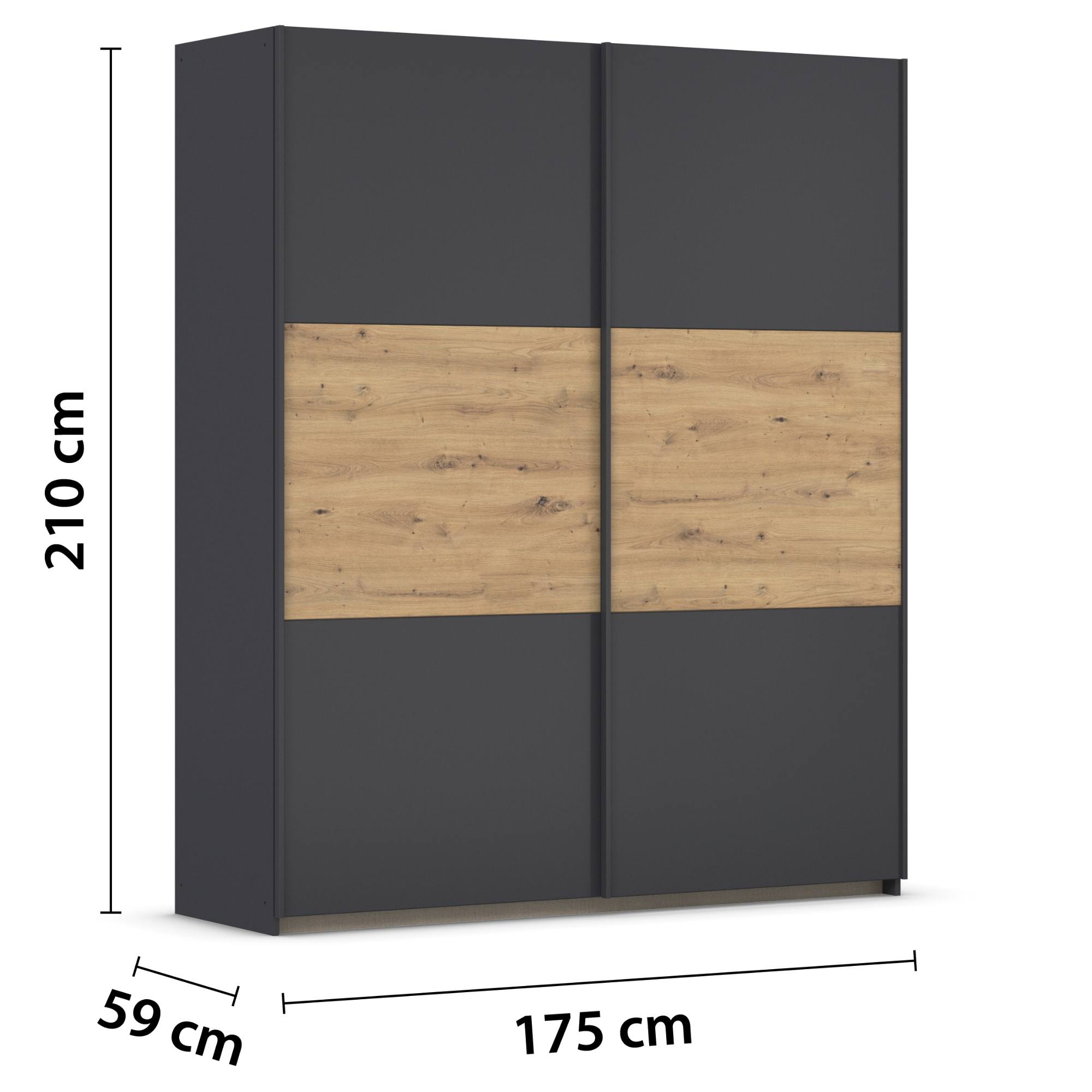 Šatníková skriňa NOE - sivá/dub artisan, šírka 175 cm
