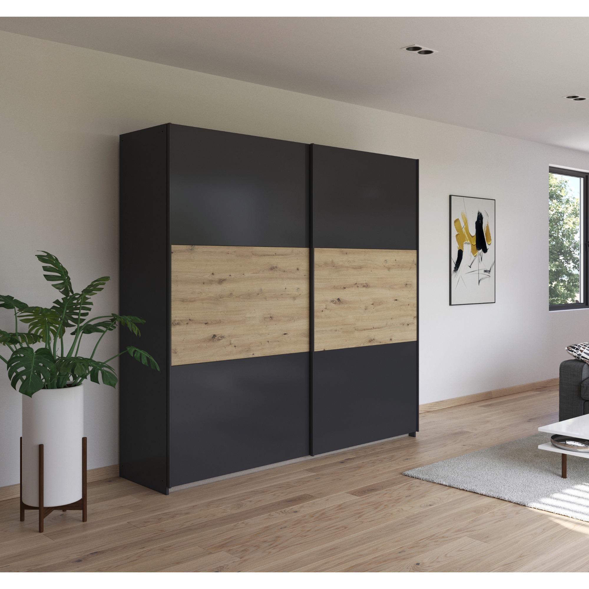 Šatníková skriňa NOE - sivá/dub artisan, šírka 218 cm