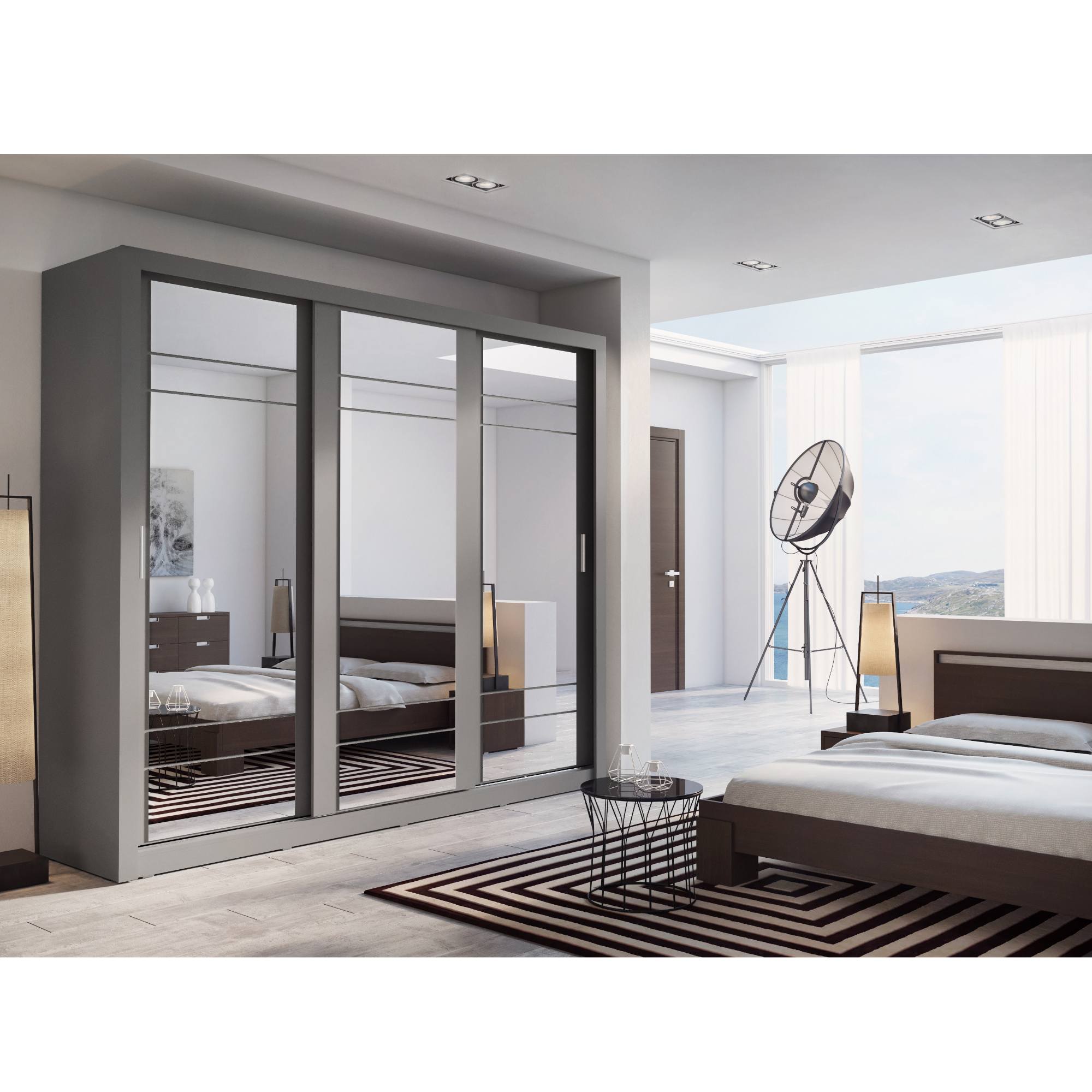 Šatníková skriňa disponuje hneď trojicou zrkadlových posuvných dverí, ktoré pomôžu k doladeniu vášho outfitu a zároveň ušetríte miesto pri otváraní. Bohatý úložný priestor zaisťuje šesť políc, jedna šatníková tyč v pravom a druhá v ľavom segmente. Všetko oblečenie tak bude vždy logicky a prehľadne usporiadané. Skriňa je vyrobená z laminovaného dreveného materiálu, ktorý sa vyznačuje ľahkou udržiavateľnosťou aj dlhou životnosťou.