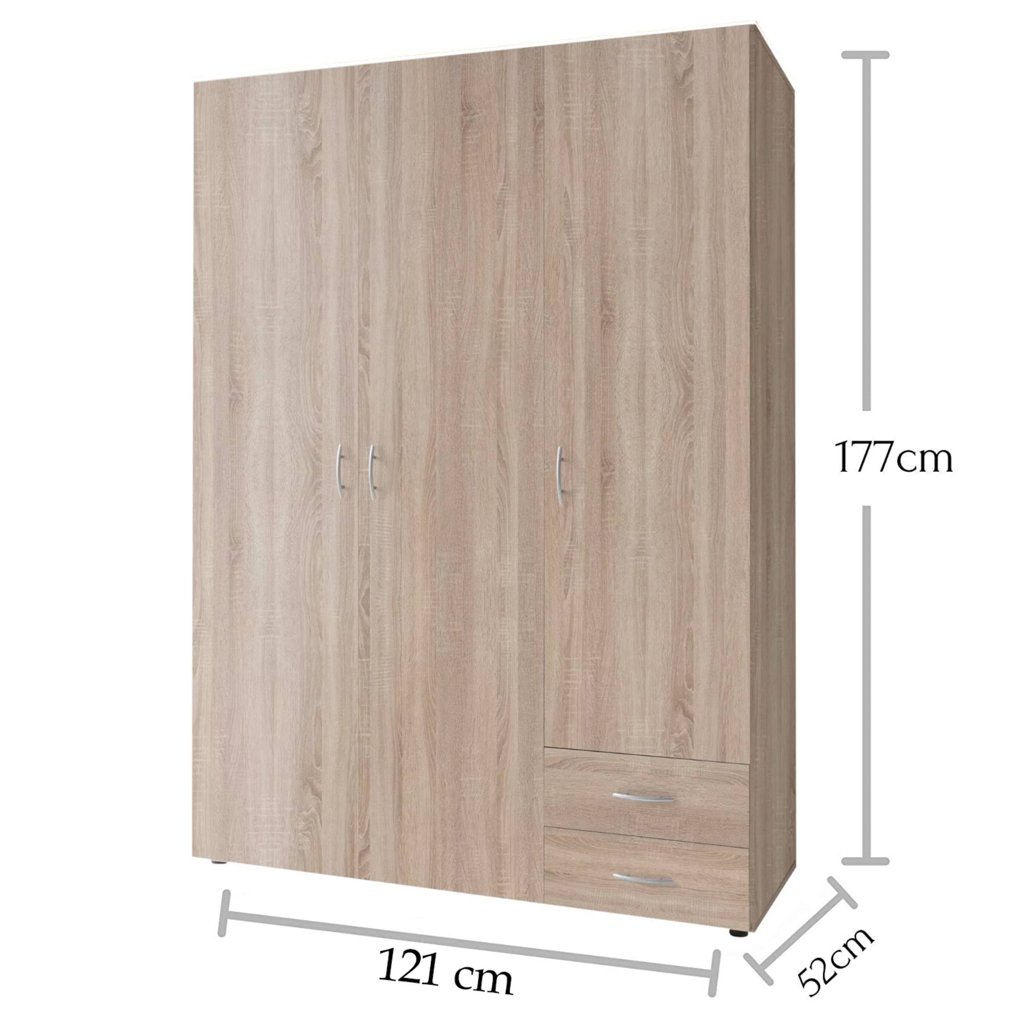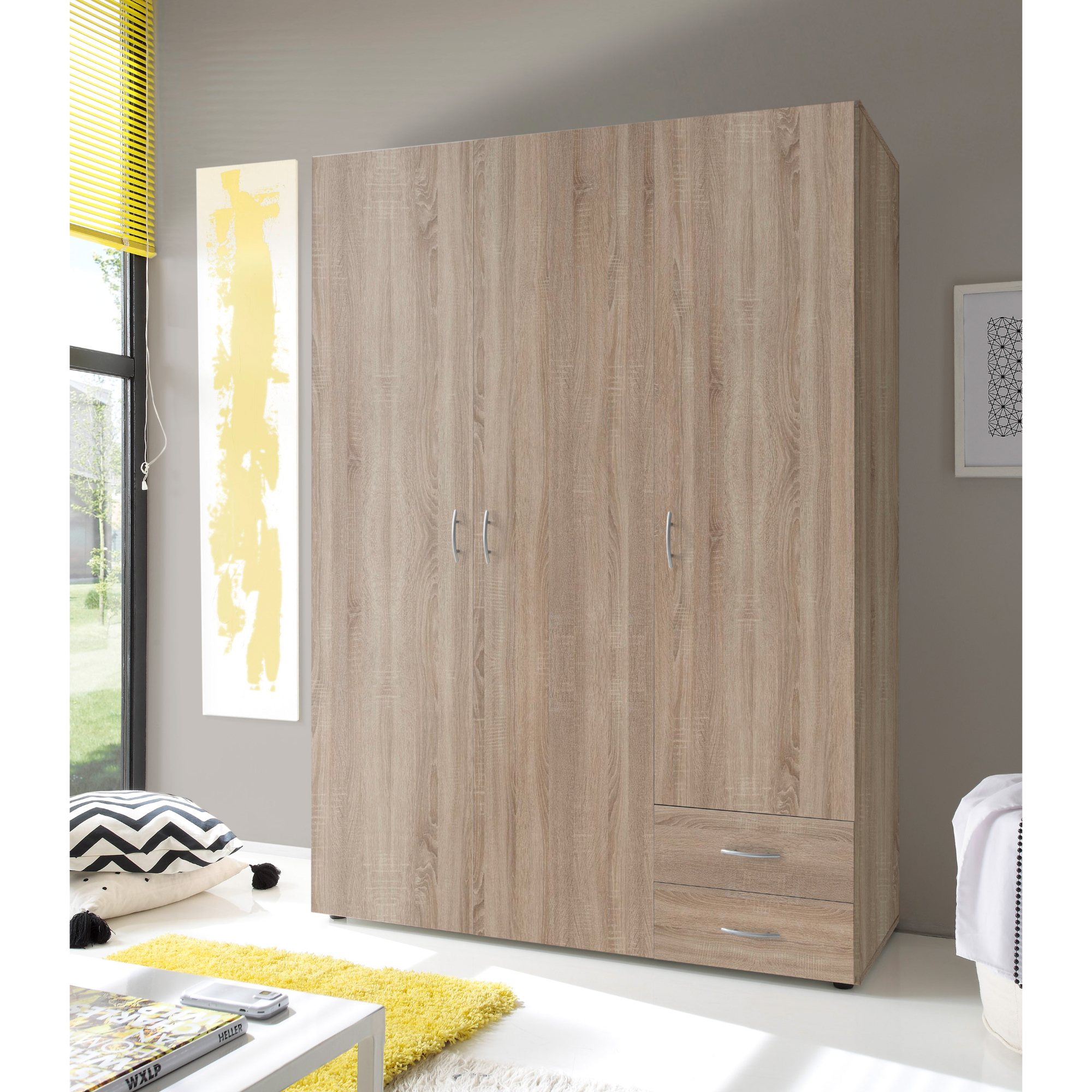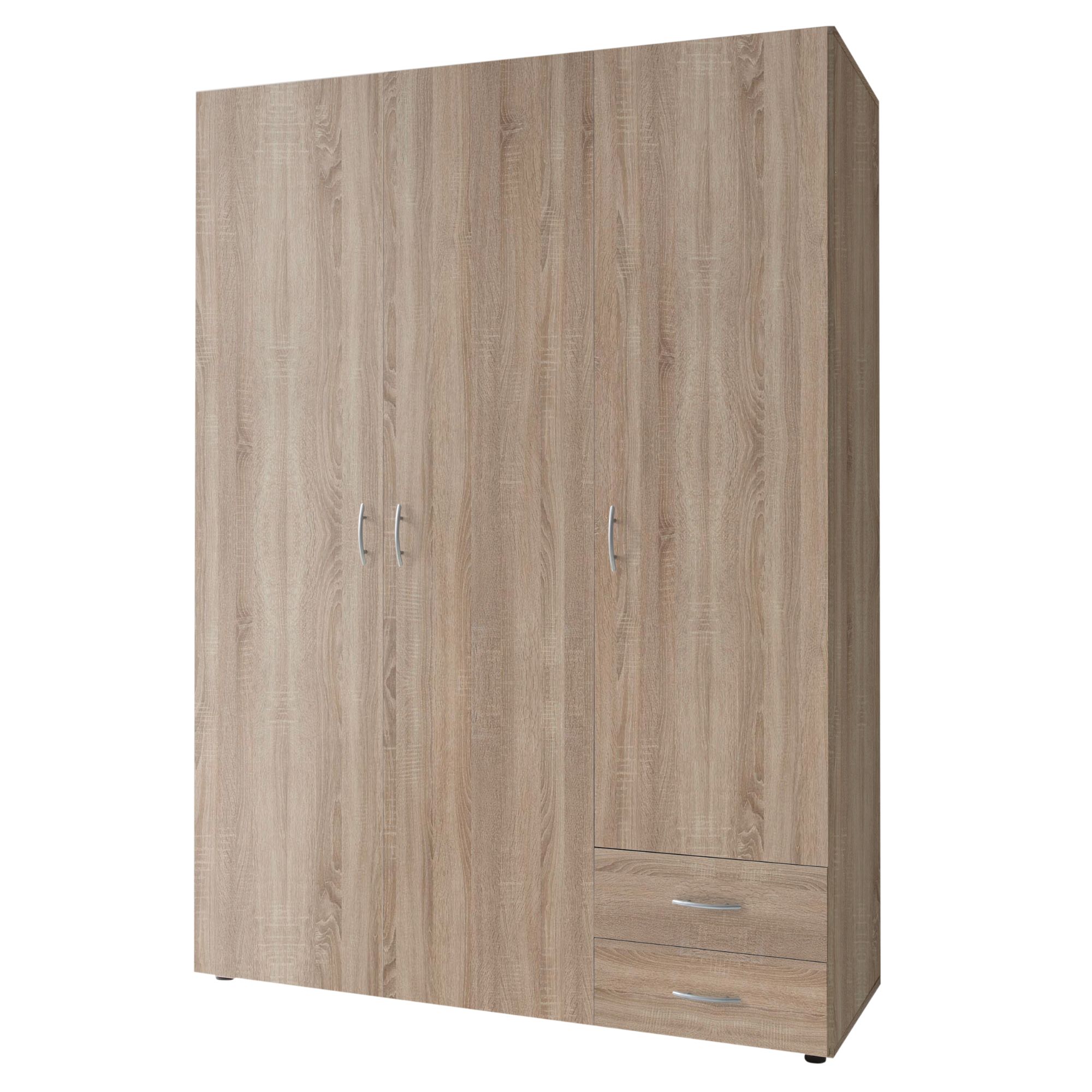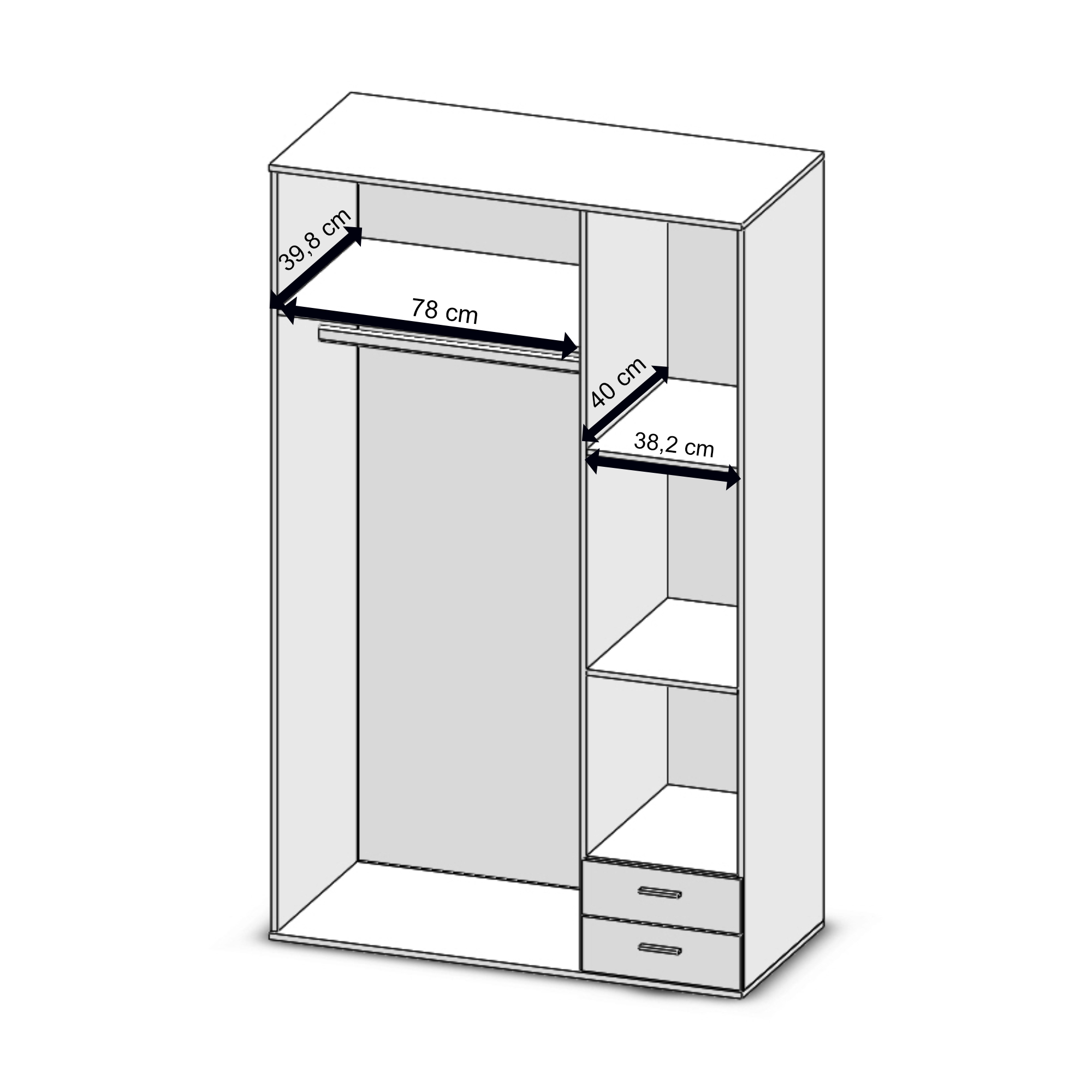 Trojdverovú šatníkovú skriňu SEBA 3 ľahko skombinujete so zvyškom interiéru vďaka jednofarebnému a nadčasovému vyhotoveniu. Vďaka svojim rozmerom sa hodí aj do menších miestností. Za párom dverí, v ľavej časti skrine, sa nachádza šatníková tyč a nad ňou vložená polica. Za samostatnými dvierkami nájdete úložný priestor, ktorý je rozdelený 2 vloženými policami a v dolnej časti sa nachádzajú ešte dve zásuvky. Decentné rúčky uľahčujú otváranie. Skriňa je vyrobená z laminovaného dreveného materiálu, ktorý je odolný a ľahký na údržbu.