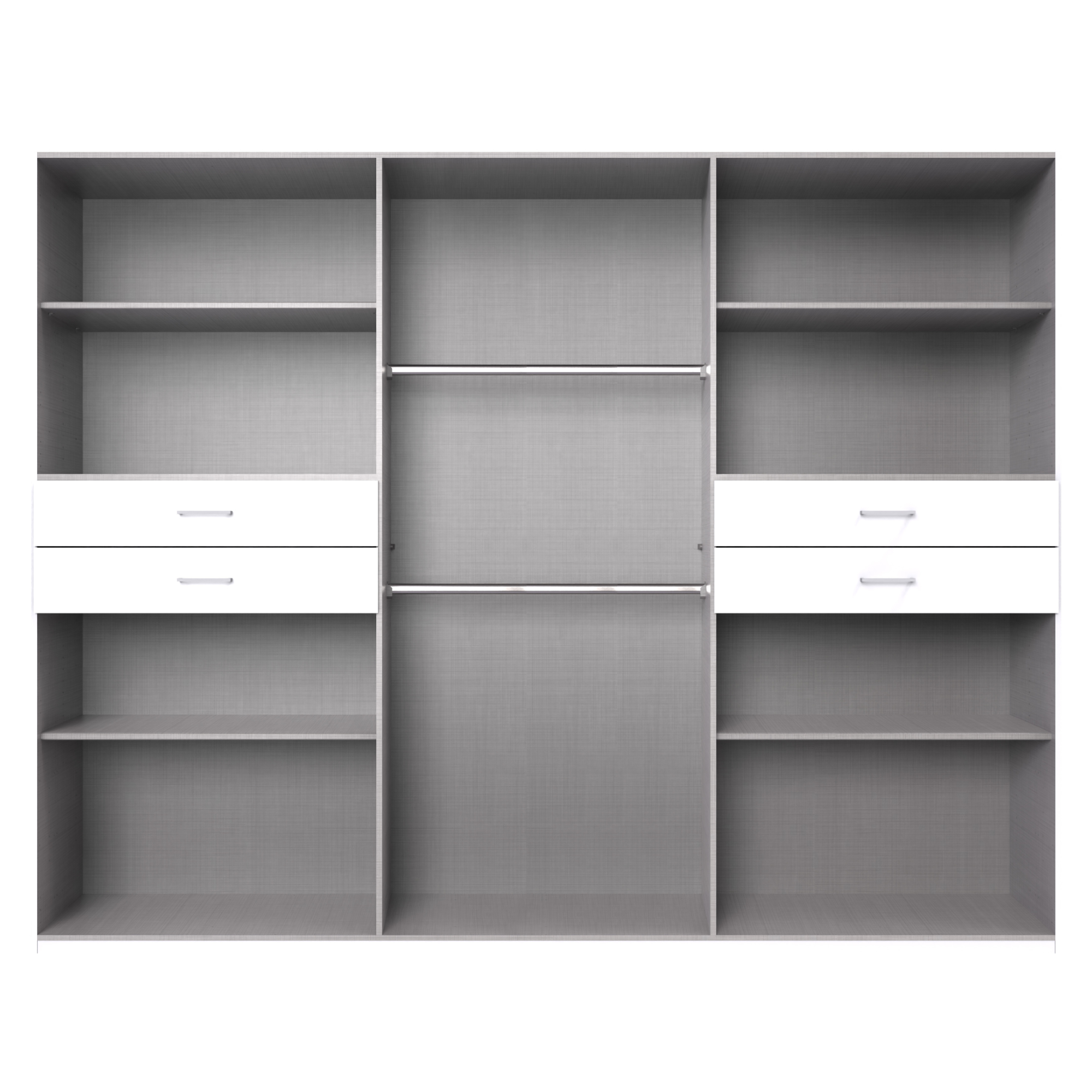 - 4 vložené police, 2 šatníkové tyče a 4 zásuvky