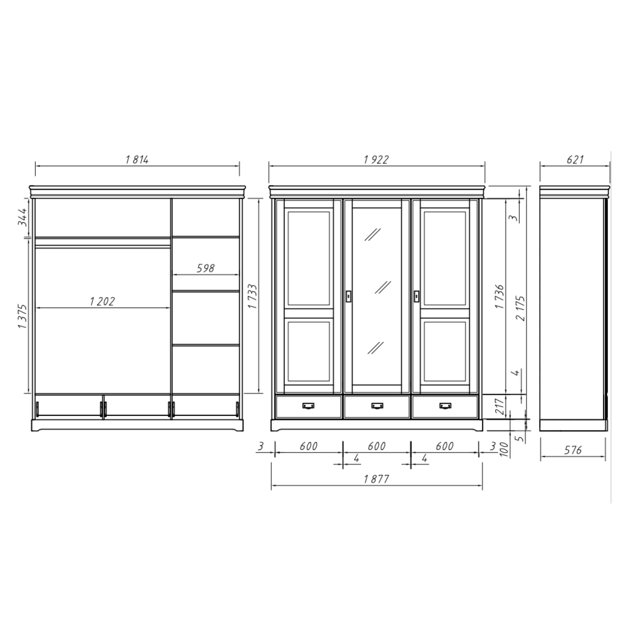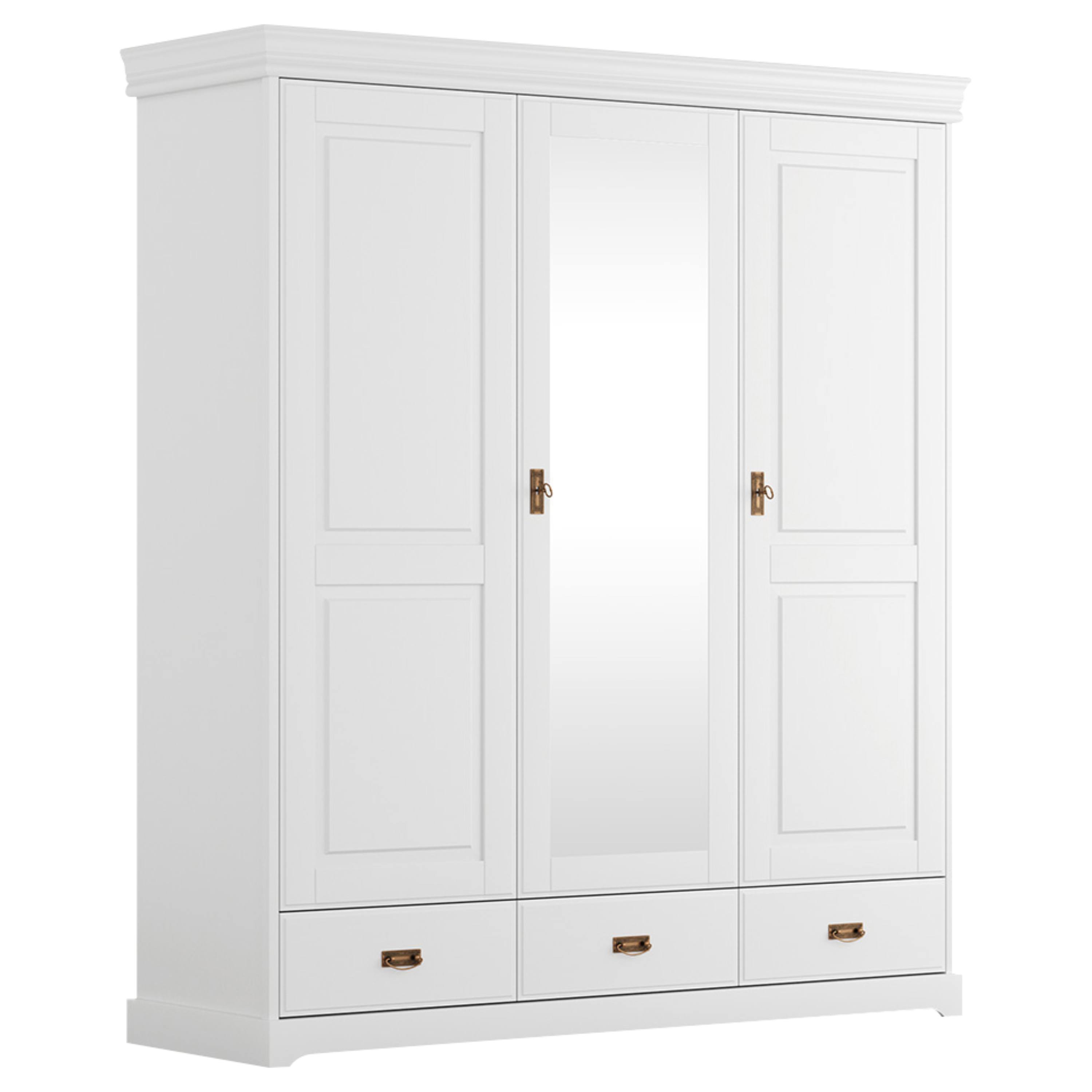 Skriňa je vybavená 3 otočnými dverami, ktoré umožňujú maximálne využitie vnútorného priestoru. Prostredné dvere sú vyplnené zrkadlom, ktoré presvetlia a opticky zväčšia aj malé interiéry. Za párom dverí na ľavej strane sa nachádza priestranná šatníková tyč na zavesenie väčších alebo krčivých kúskov a nad ňou 1 vložená polica. Priestor za poslednými dverami obsahuje 3 vložené police ideálny na uloženie poskladaného oblečenia a ďalšieho textilu. Na oddelenie spodnej bielizne, doplnkov a ďalších drobností sa vám budú hodiť 3 praktické zásuvky v spodnej časti konštrukcie.