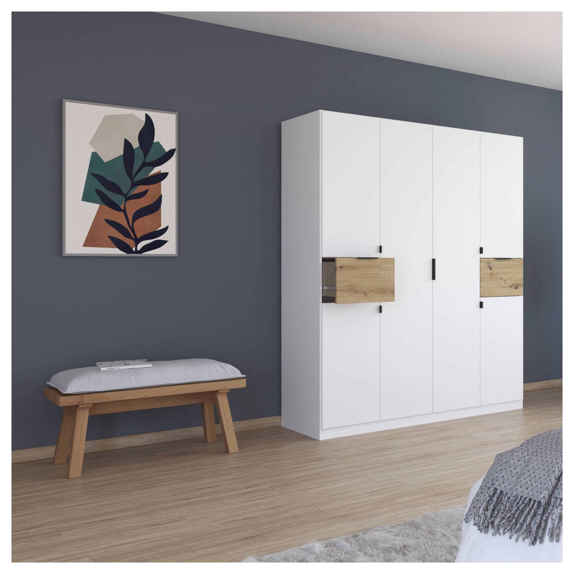 Šatníková skriňa TICAO - alpská biela/dub artisan, šírka 181 cm