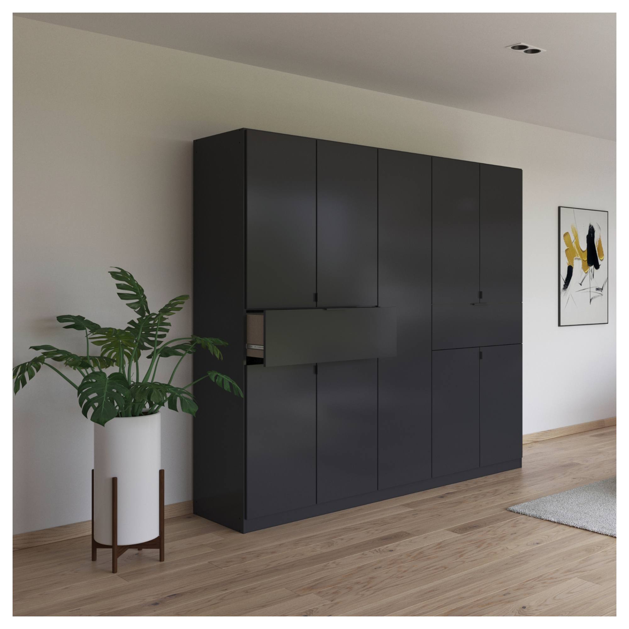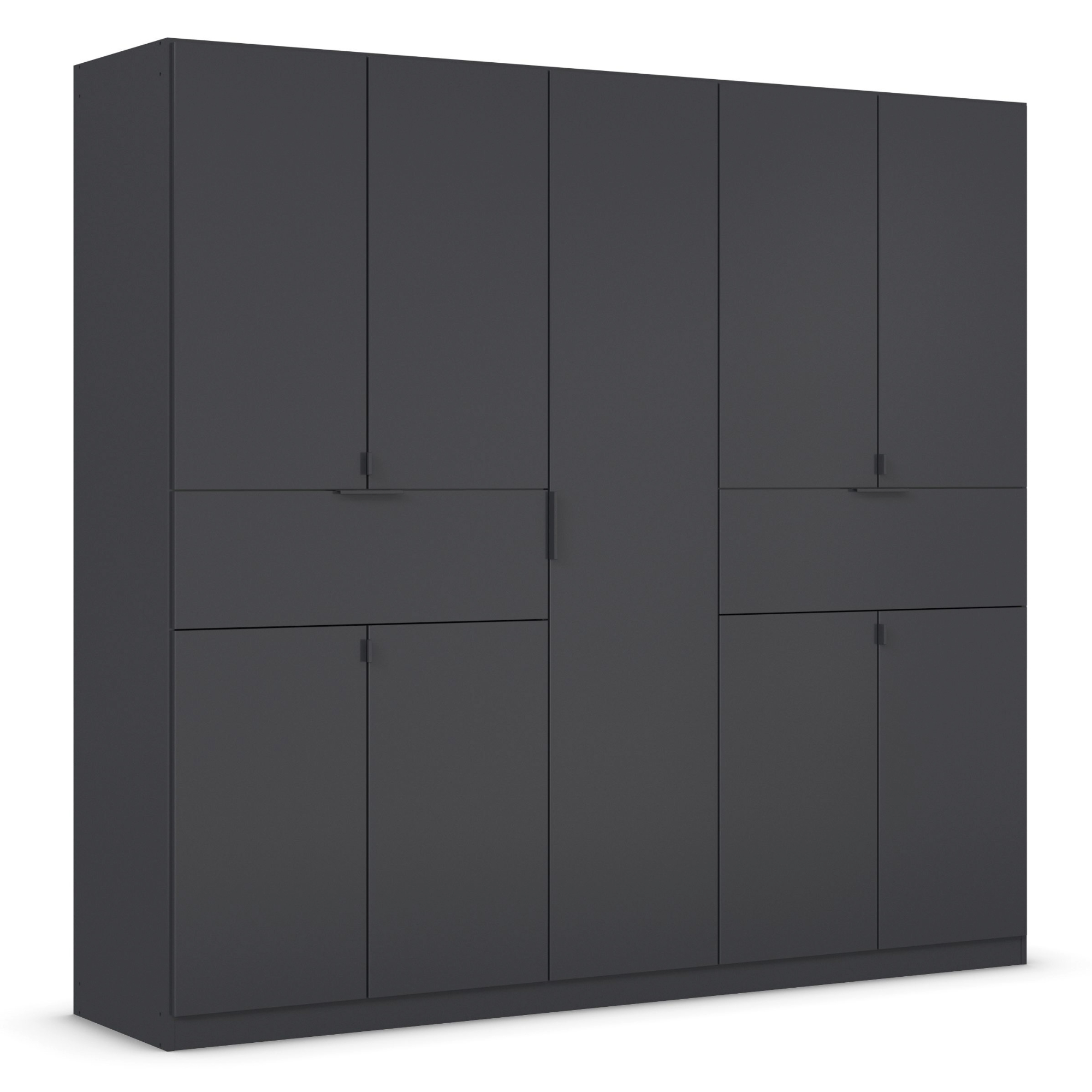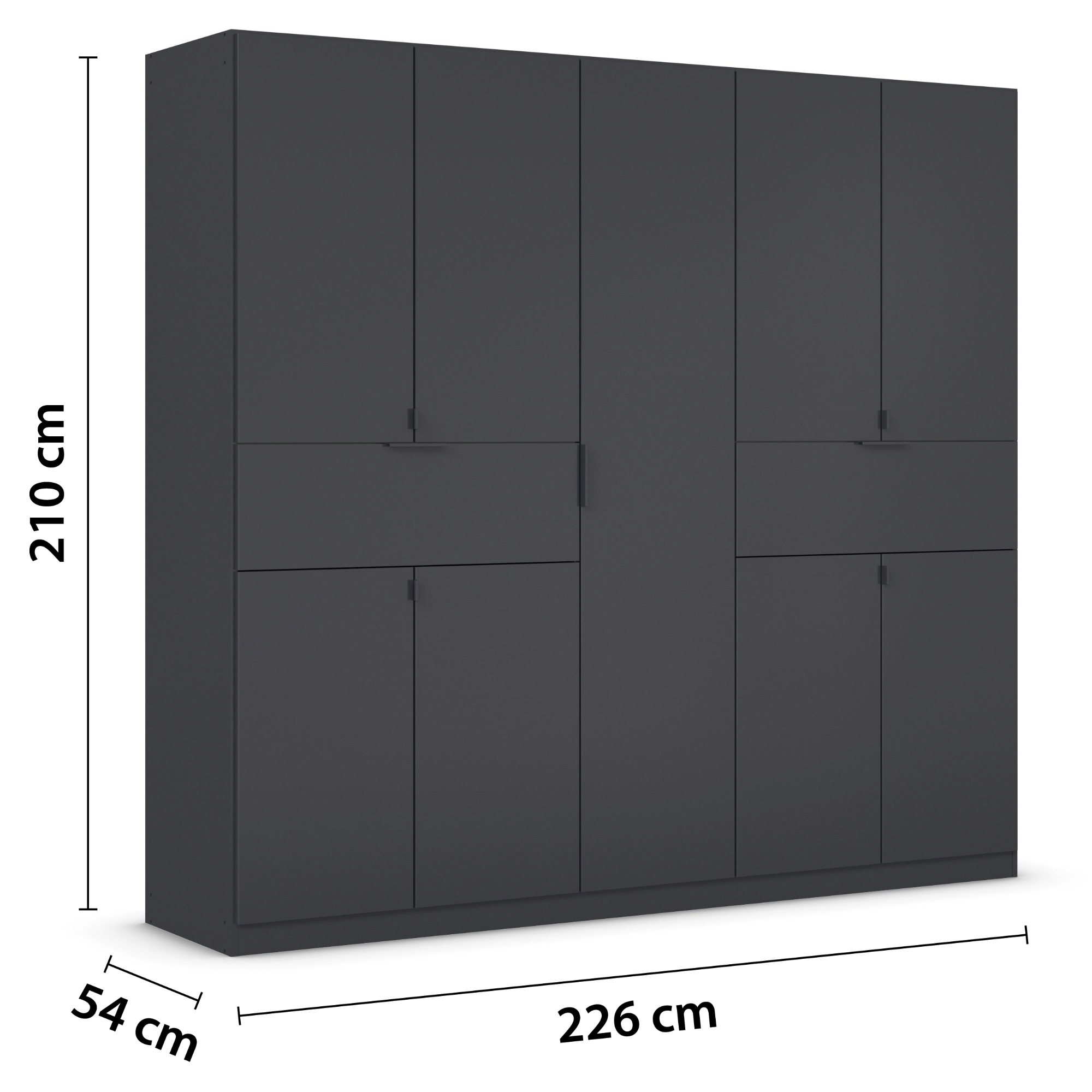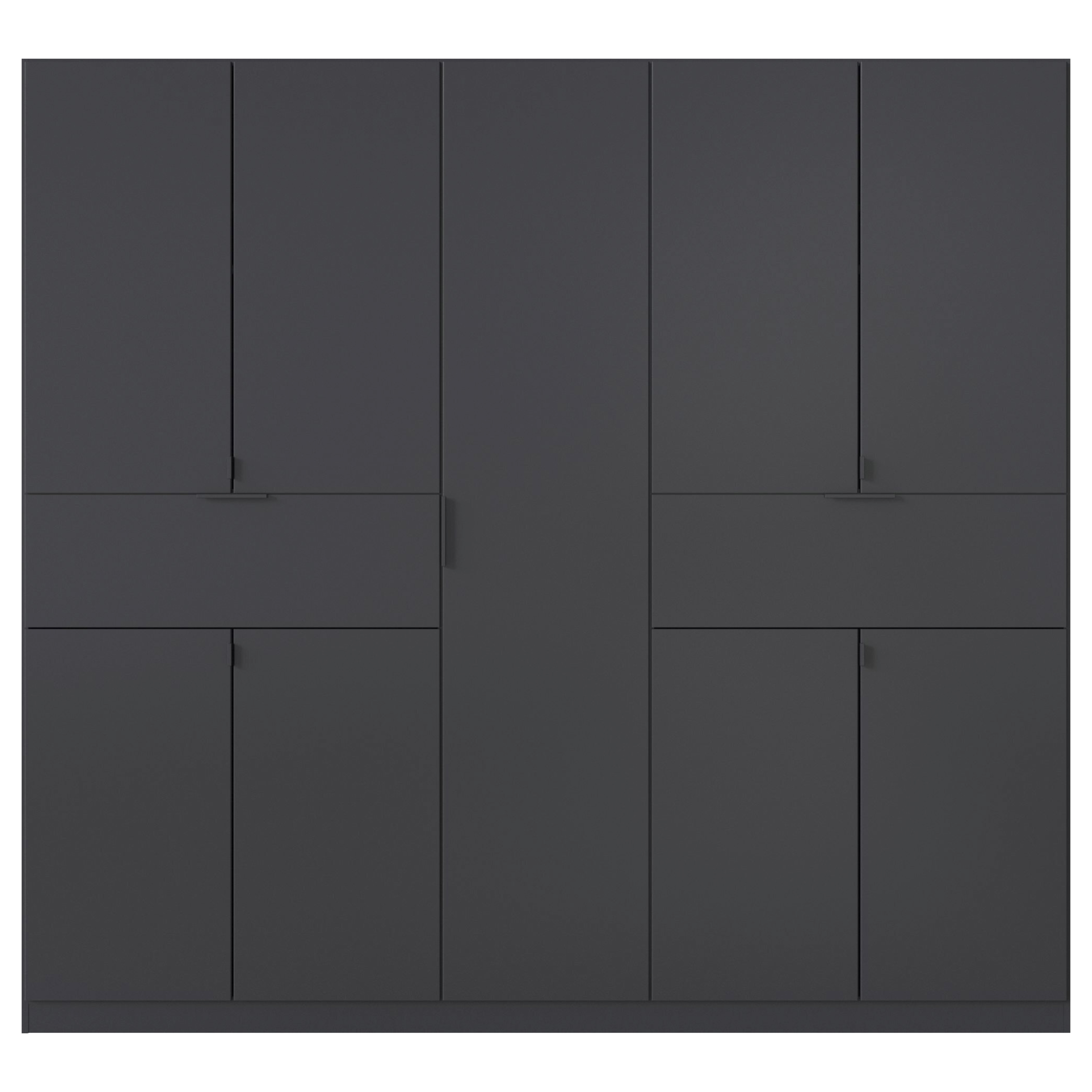 Skriňa je uzatvárateľná pomocou 9 otočných dverí a 2 praktických zásuviek. Vnútorné vybavenie pozostáva celkom z 3 vložených políc a 3 šatníkových tyčí. Pre maximálne zužitkovanie priestoru môžete využiť aj dno skrine, ktoré je ideálne na skladovanie úložných boxov a ďalších organizérov. Jednoduché otváranie všetkých prvkov zaisťujú decentné rúčky. Skriňa je vyrobená z laminovanej drevotriesky nenáročnej na údržbu.