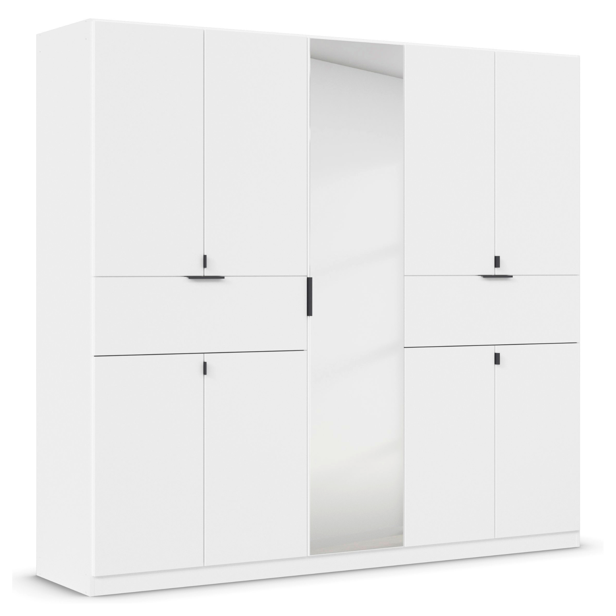 Skriňa je vybavená 9 otočnými dverami z ktorých jedny sú osadené zrkadlom, ktoré presvetlia a opticky zväčšia interiér. Jednoducho riešené vnútorné vybavenie pozostáva z 3 šatníkových tyčí a 3 vložených políc. Skriňa ďalej obsahuje 2 priestranné zásuvky na oddelené skladovanie spodnej bielizne, šperkov a iných doplnkov. Na maximálne využitie skrine môžete zaplniť aj jej dno, ktoré je ideálne na úložné boxy a ďalšie organizéry. Otváranie dverí a zásuviek uľahčujú praktické, drobné rúčky. Skriňa je vyrobená z laminovanej drevotriesky nenáročnej na údržbu.