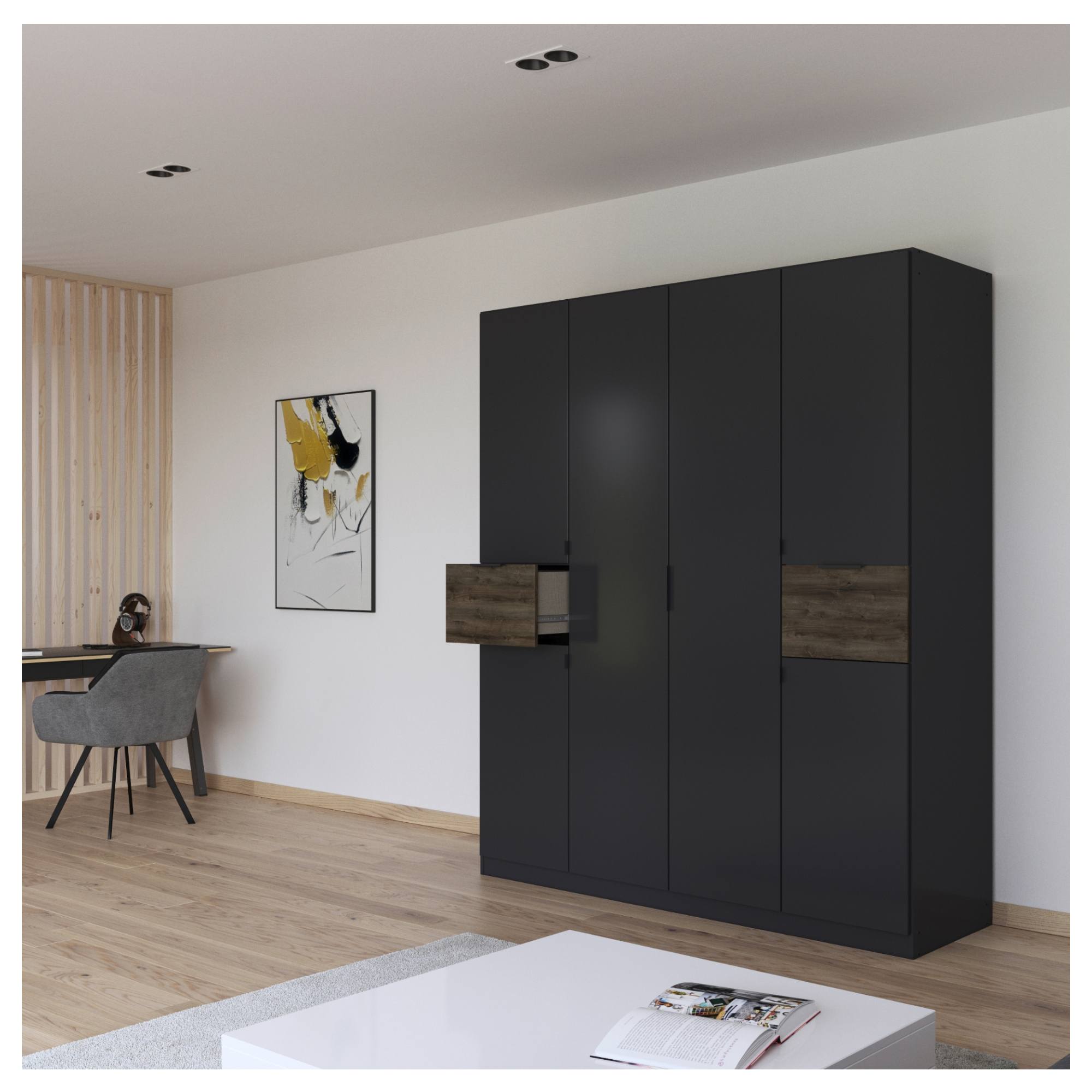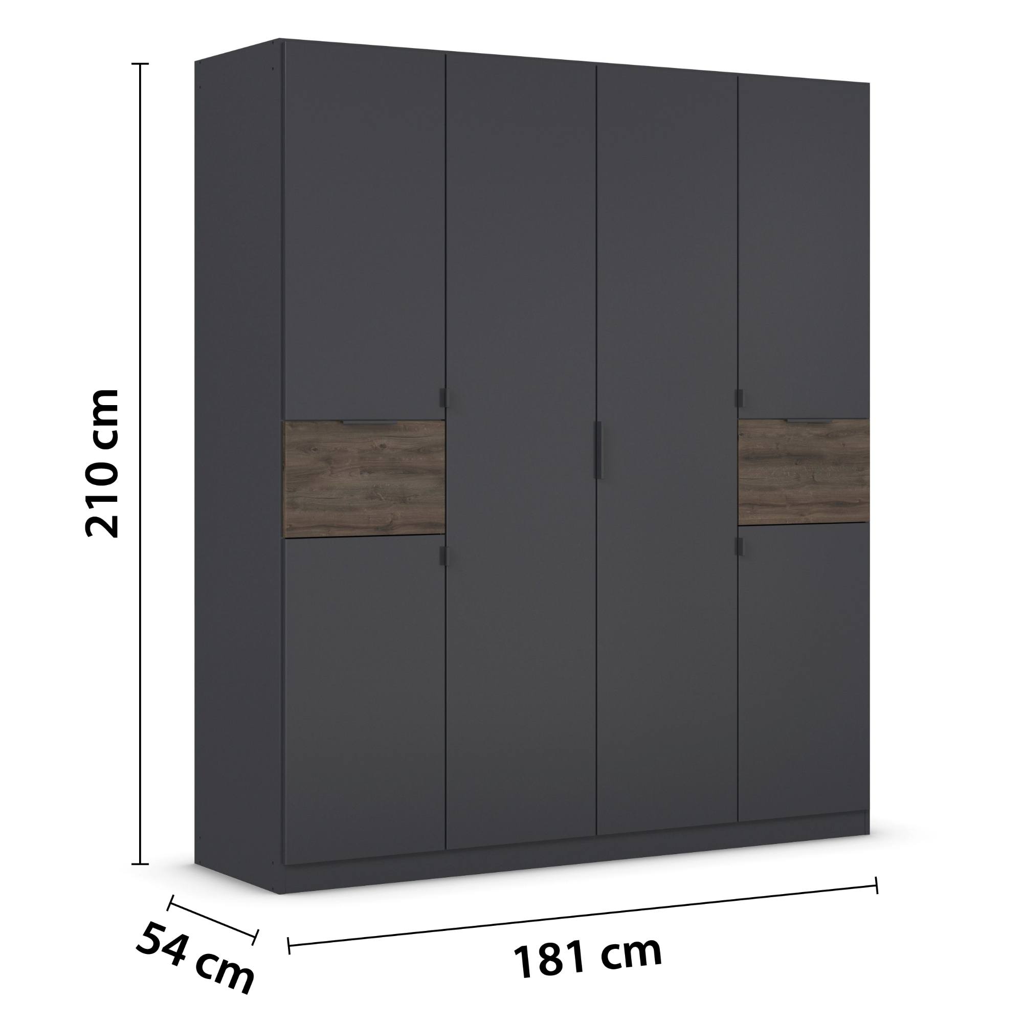 Šatníková skriňa TICAO - metalická sivá/dub atlantic tmavý, šírka 181 cm