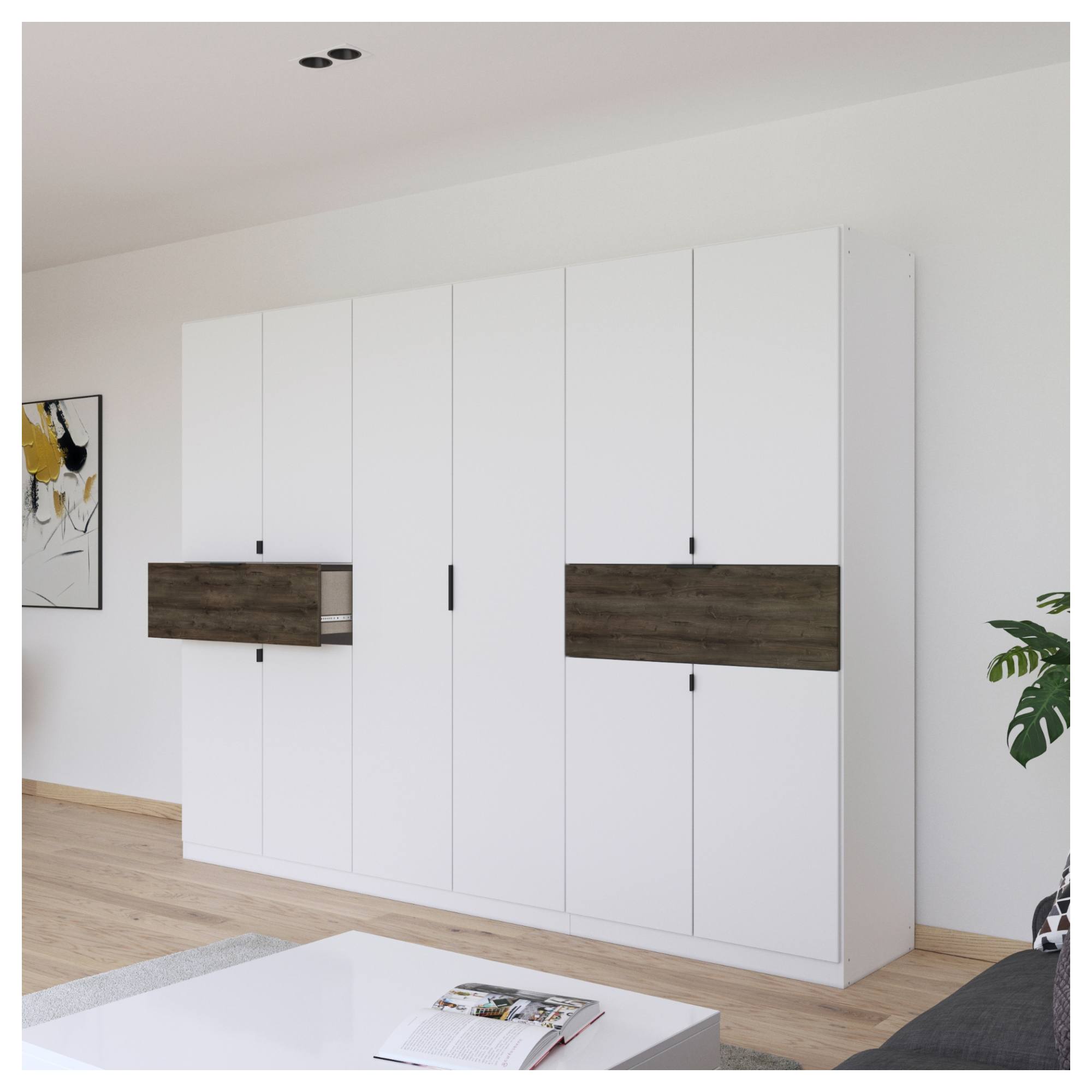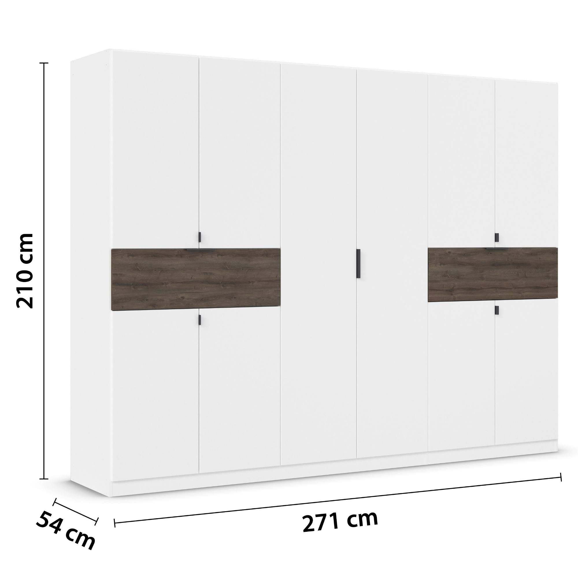 Šatníková skriňa TICAO V - alpská biela/dub atlantic tmavý, šírka 271 cm