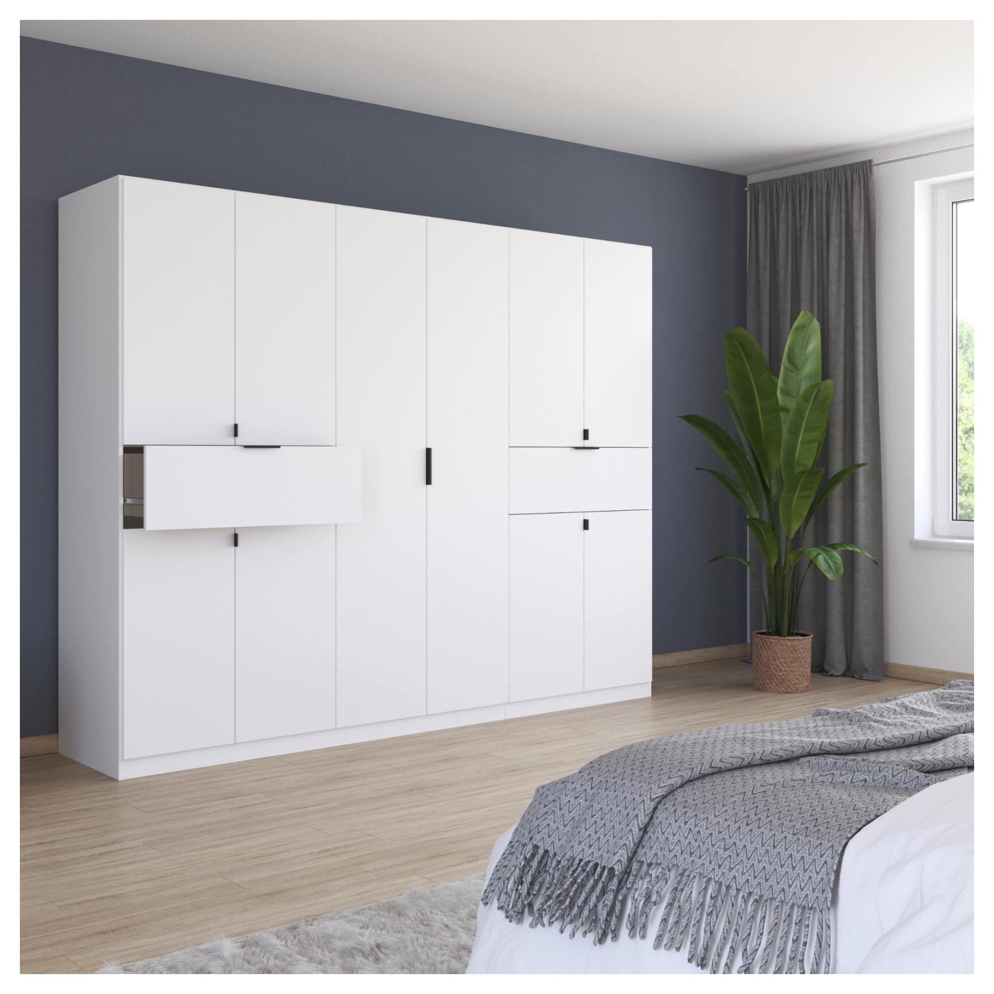 Šatníková skriňa TICAO V - alpská biela, šírka 271 cm