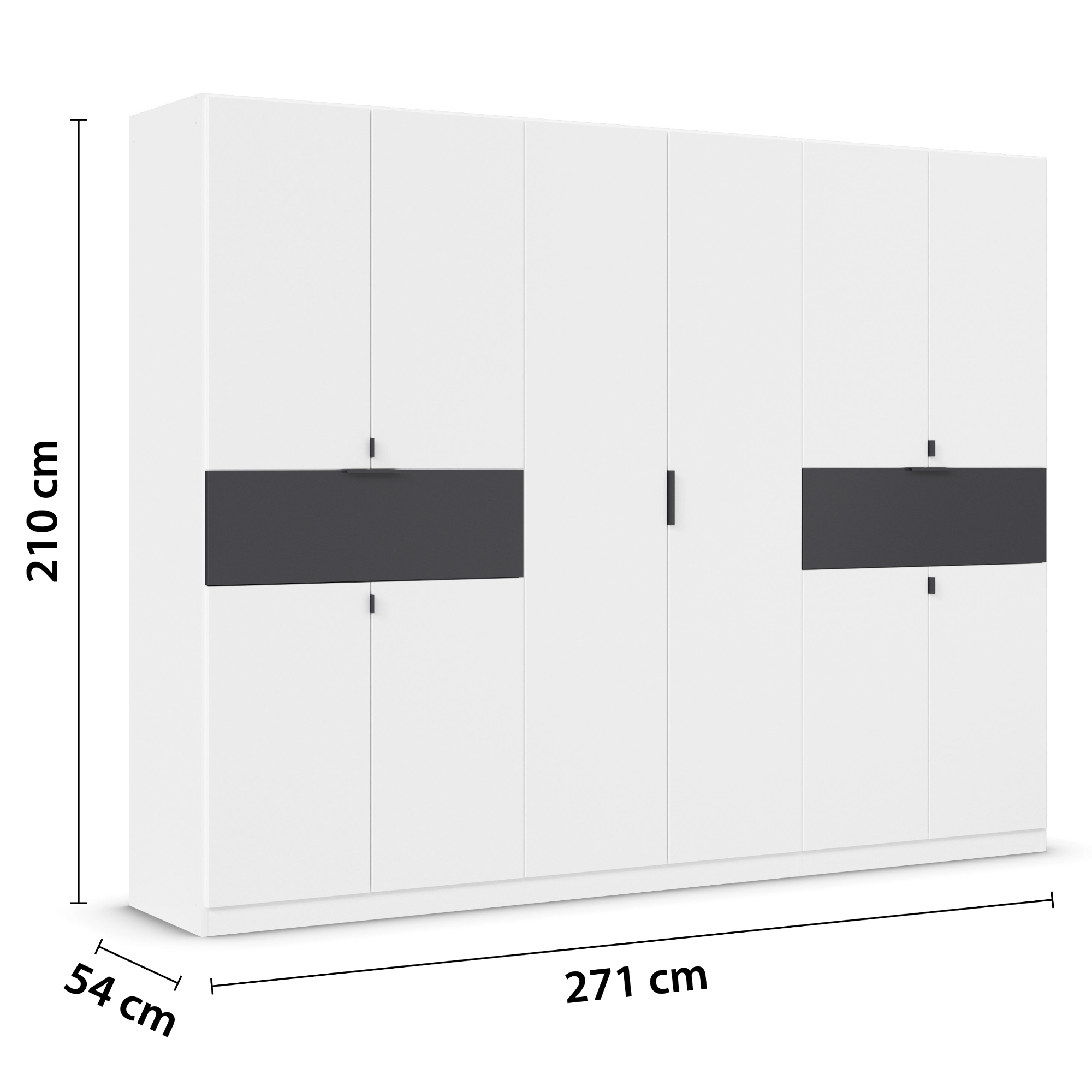 Šatníková skriňa TICAO V - alpská biela/sivá metalická, šírka 271 cm