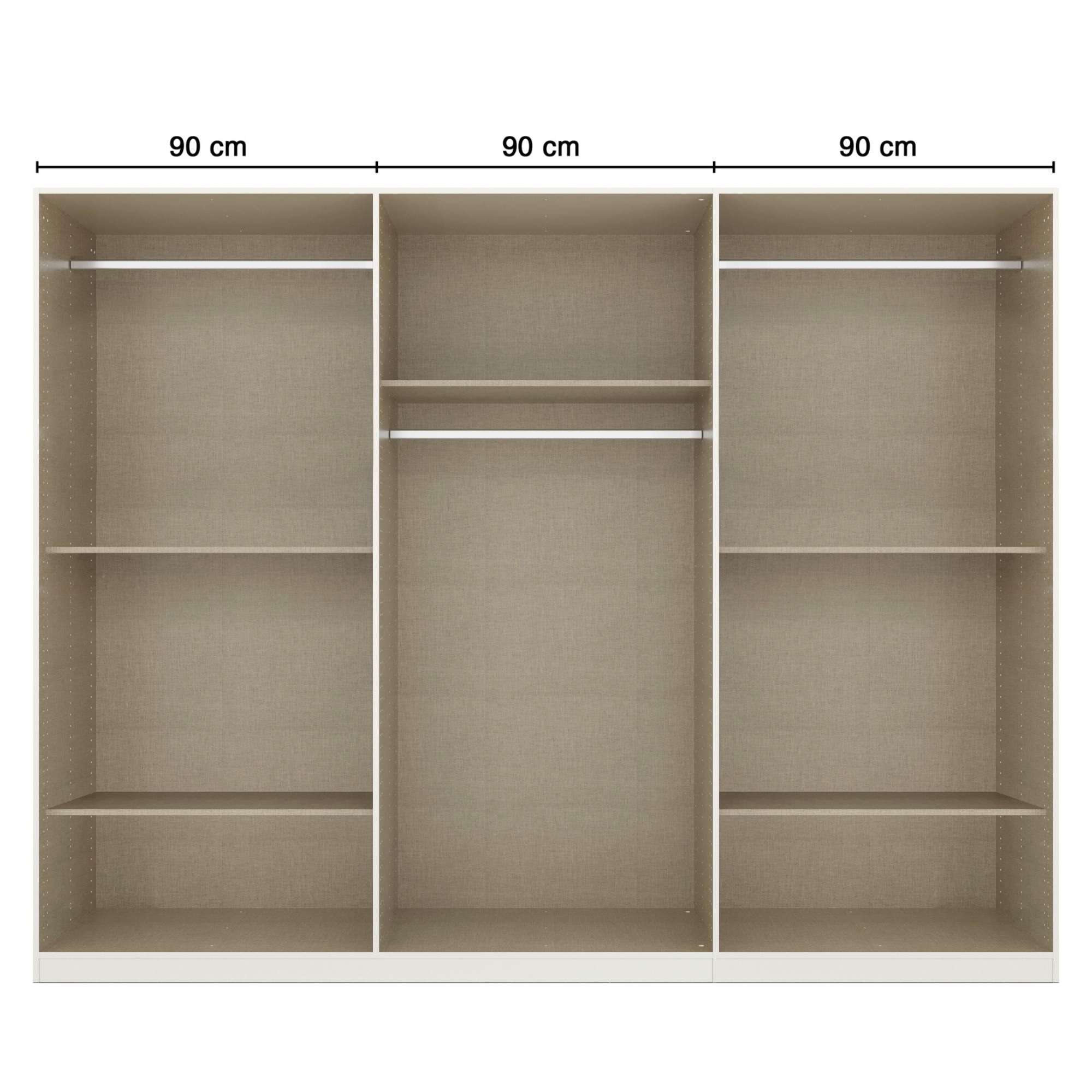 Moderná, minimalistická šatníková skriňa TICAO V s veľkým úložným priestorom a prakticky riešeným vnútorným vybavením je perfektnou voľbou na prehľadné uskladnenie vášho šatstva a doplnkov.