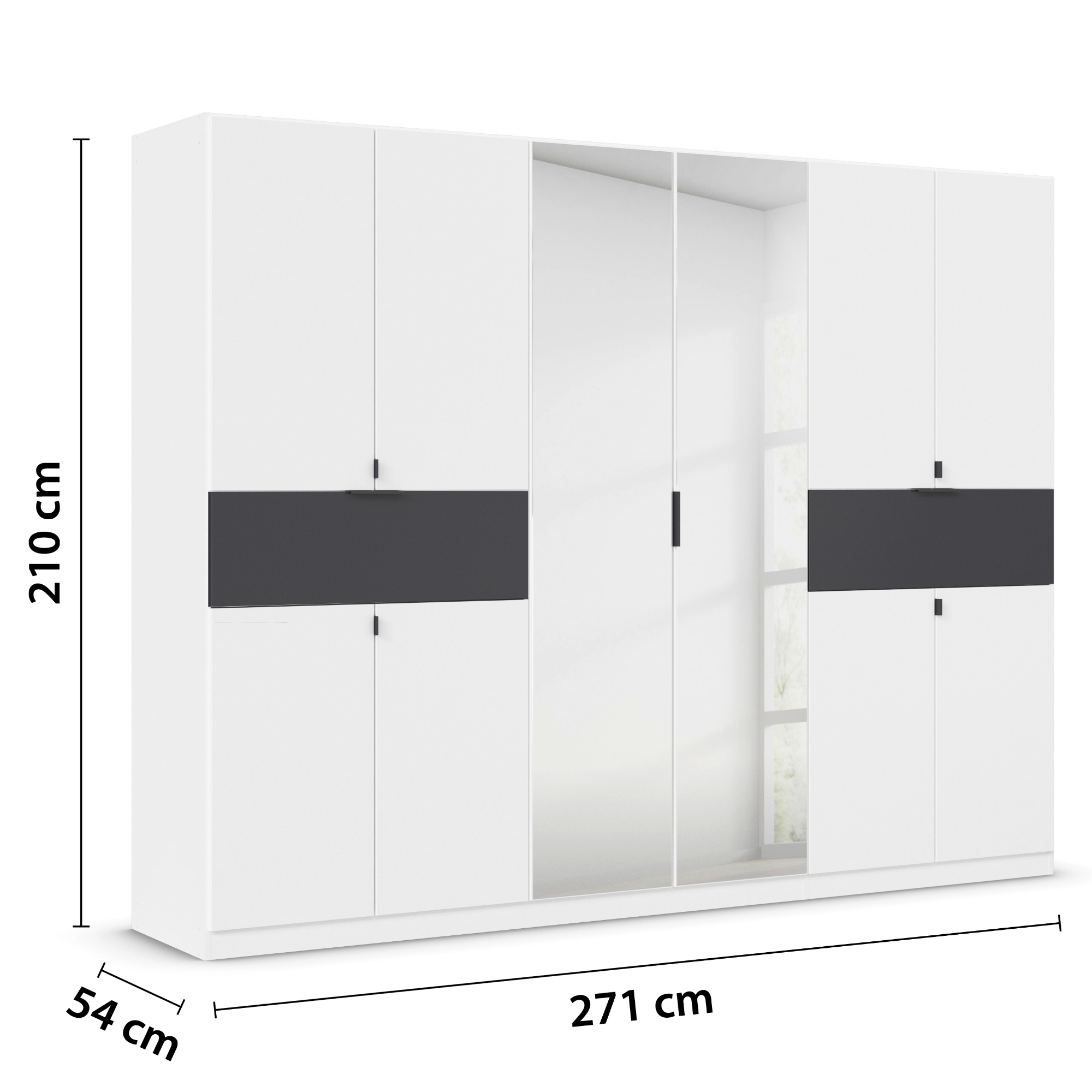 Šatníková skriňa TICAO VI - alpská biela/metalická sivá, šírka 271 cm