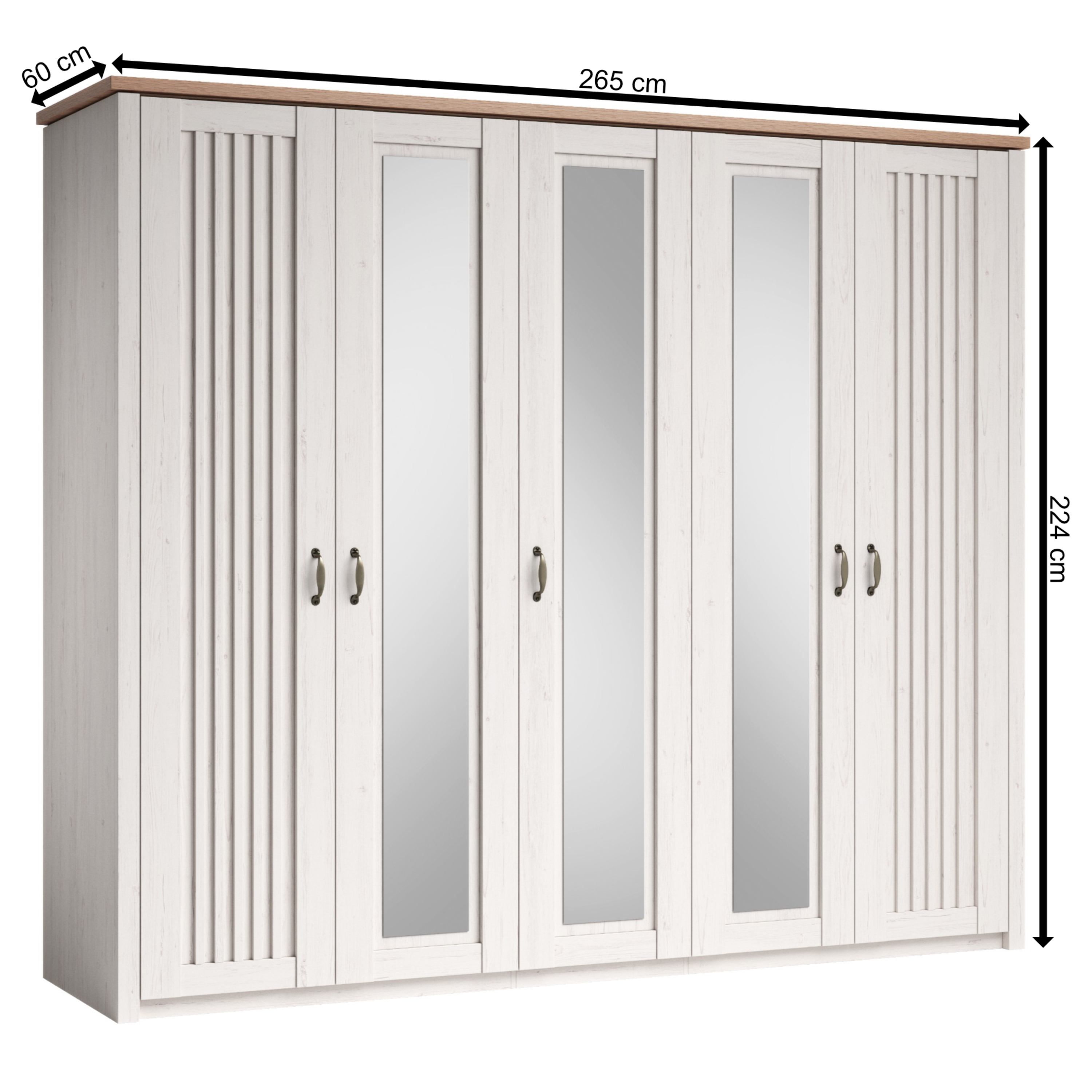 Šatníková skriňa TRIENT - pínia/dub artisan, 5 dverí, 3 zrkadlá