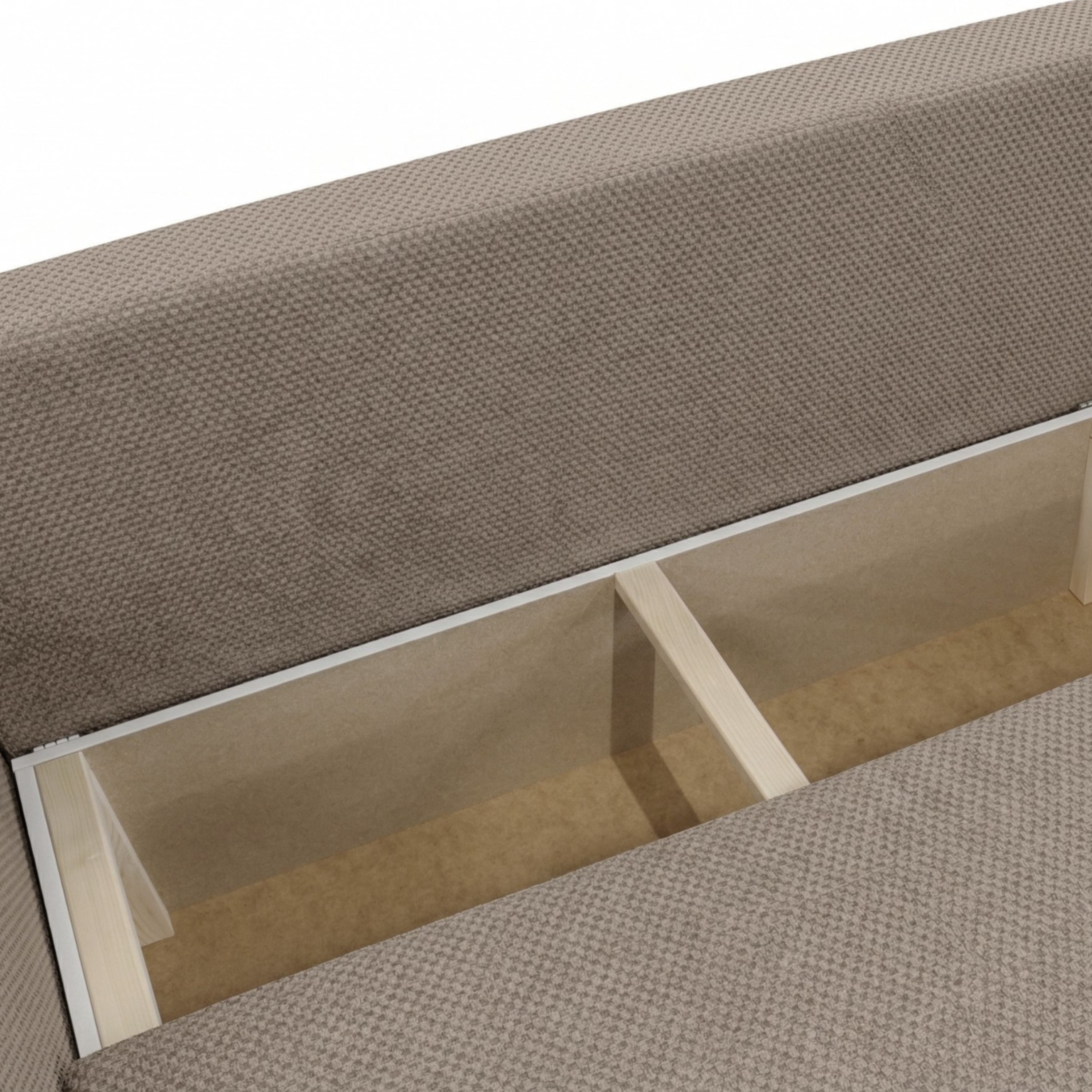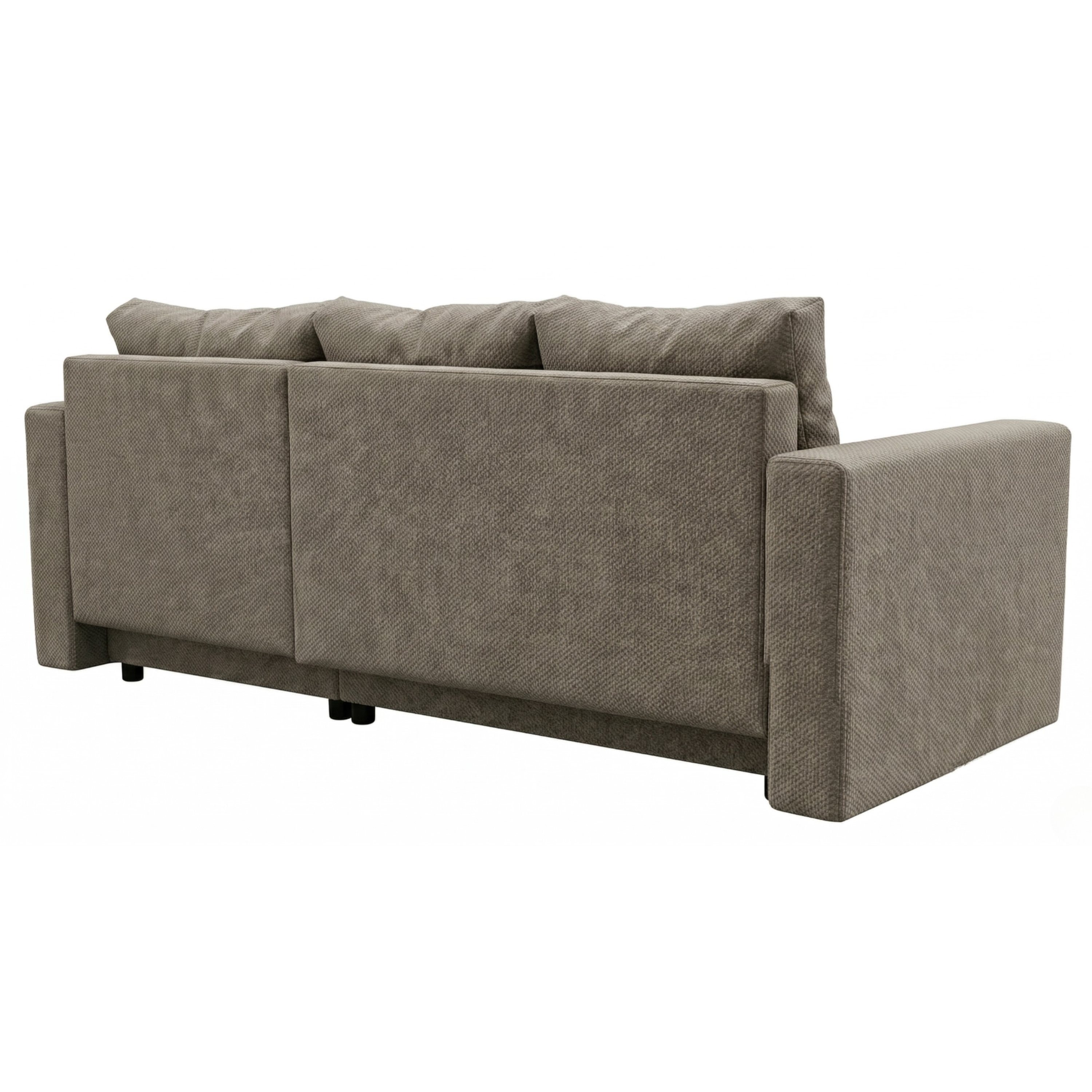 Mäkké penové jadro a odnímateľné chrbtové vankúše vám umožnia užívať si optimálnu relaxáciu na maximum. Sedacia súprava ponúka tiež možnosť využitia na občasné prespanie. Behom chvíľky vytvoríte pomocou mechanizmu so sklopným chrbtom komfortné lôžko. Integrovaný úložný priestor poskytne miesto na lôžkoviny. Rohová sedacia súprava nemusí byť nutne umiestnená v rohu miestnosti alebo pri stene. Celočalúnené vyhotovenie vám dovolí umiestniť sedačku podľa dispozície interiéru. Krásne vynikne aj vo voľnom priestore. Navyše si vďaka variabilnému otomanu môžete pri montáži zvoliť, na ktorej strane bude umiestnený tak, aby poskytoval maximálne využitie.