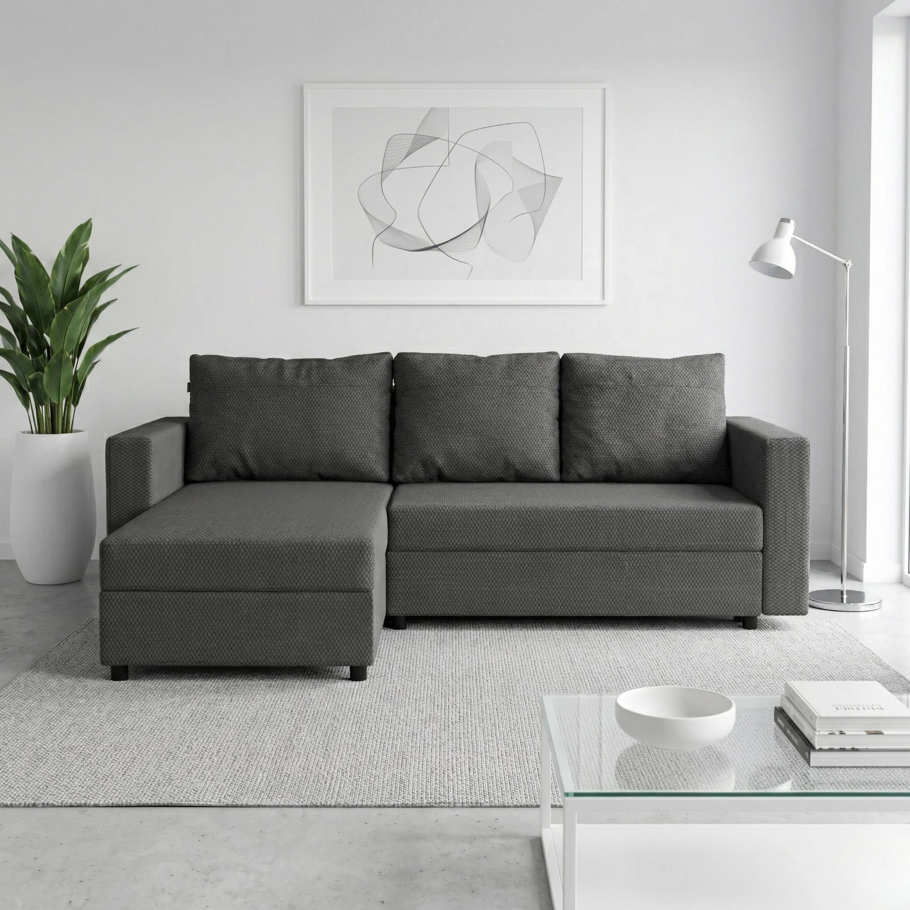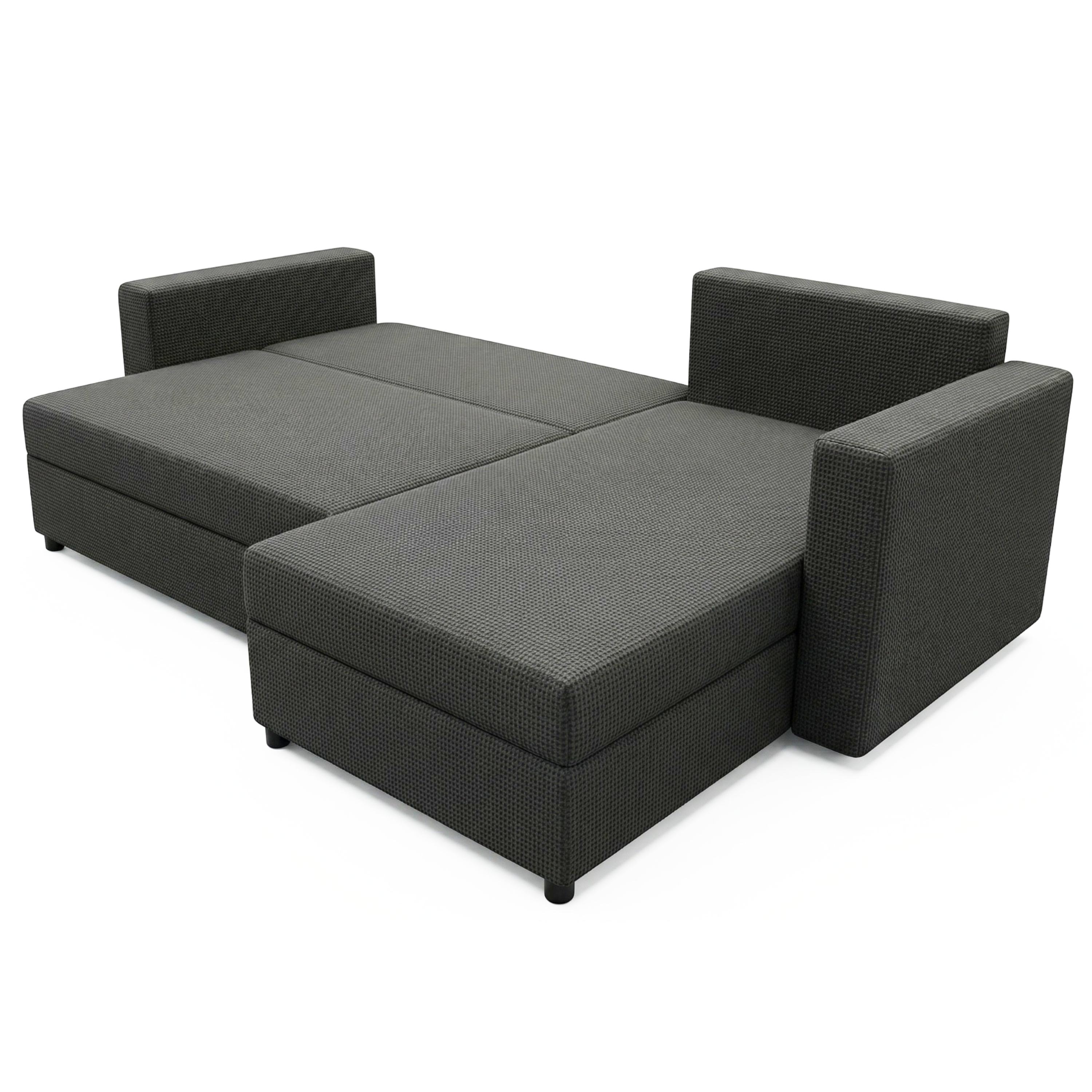 Mäkké penové jadro a odnímateľné chrbtové vankúše vám umožnia užívať si optimálnu relaxáciu na maximum. Sedacia súprava ponúka tiež možnosť využitia na občasné prespanie. Behom chvíľky vytvoríte pomocou mechanizmu so sklopným chrbtom komfortné lôžko. Integrovaný úložný priestor poskytne miesto na lôžkoviny. Rohová sedacia súprava nemusí byť nutne umiestnená v rohu miestnosti alebo pri stene. Celočalúnené vyhotovenie vám dovolí umiestniť sedačku podľa dispozície interiéru. Krásne vynikne aj vo voľnom priestore. Navyše si vďaka variabilnému otomanu môžete pri montáži zvoliť, na ktorej strane bude umiestnený tak, aby poskytoval maximálne využitie.