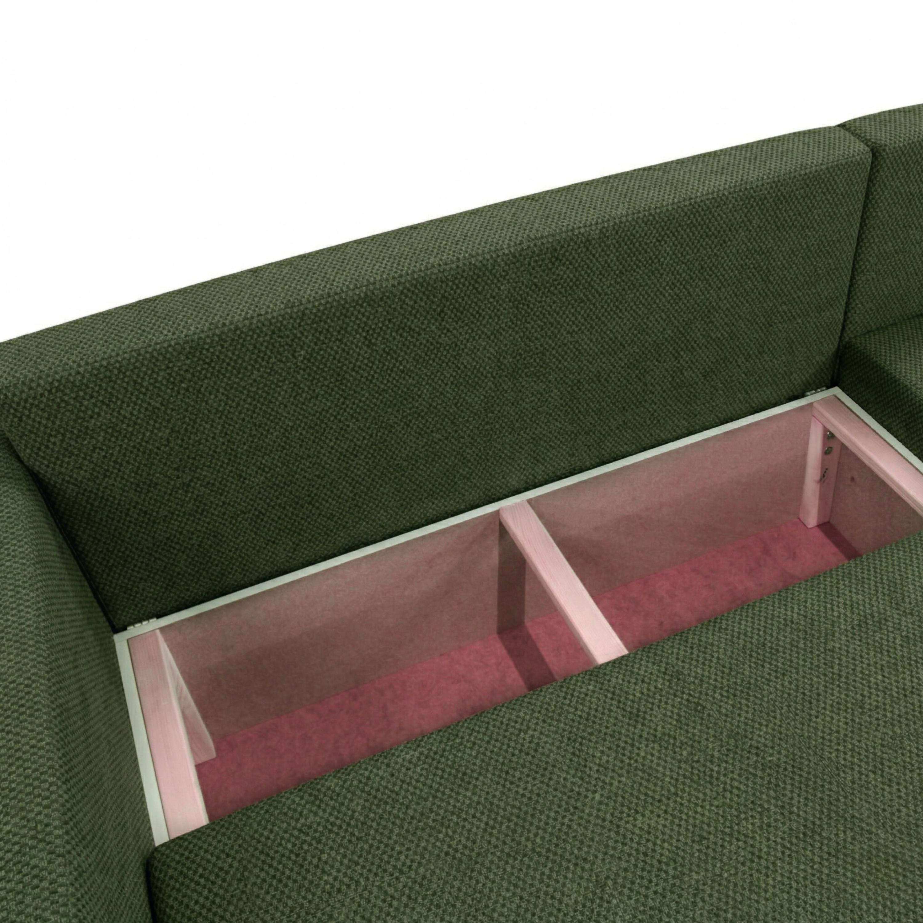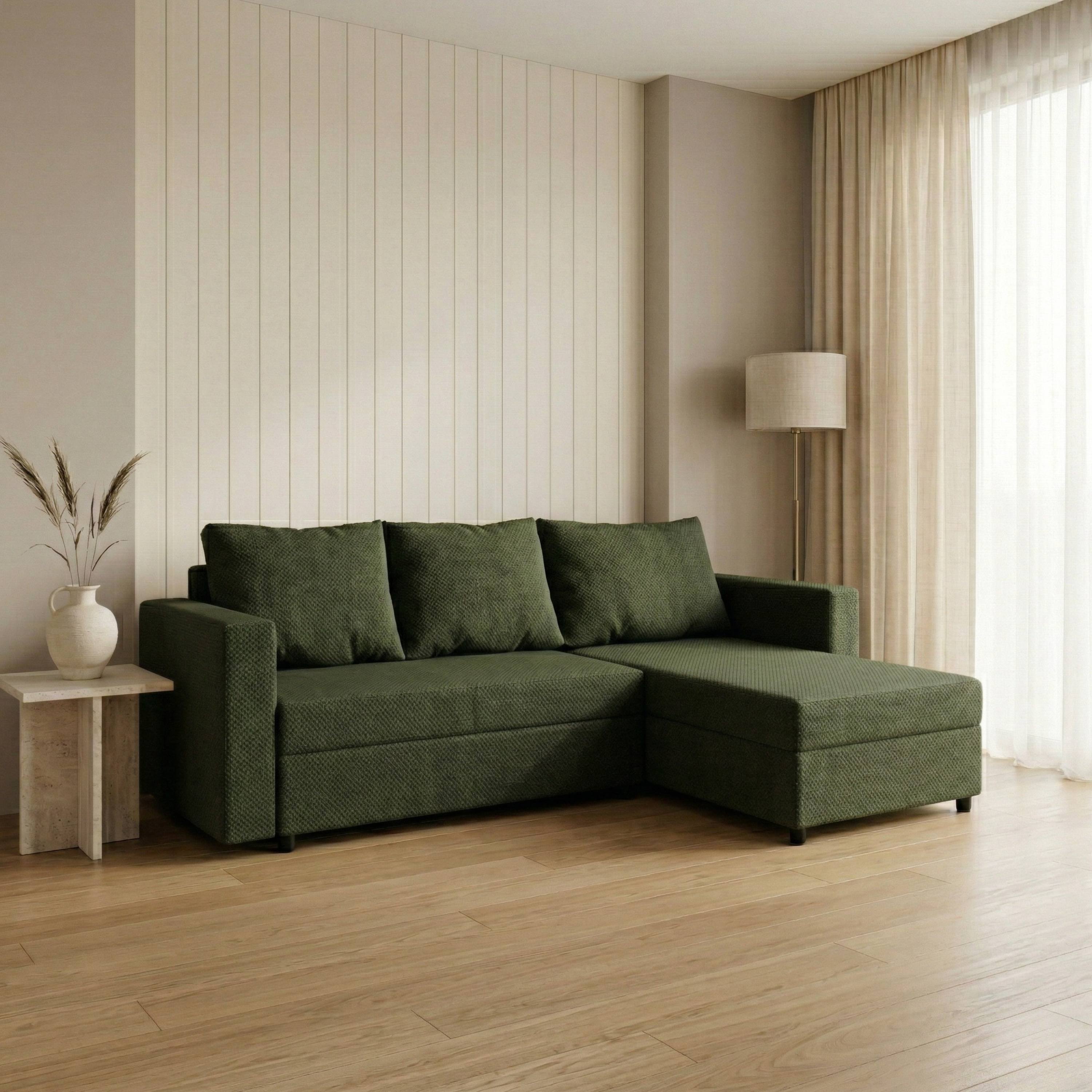 Mäkké penové jadro a odnímateľné chrbtové vankúše vám umožnia užívať si optimálnu relaxáciu na maximum. Sedacia súprava ponúka tiež možnosť využitia na občasné prespanie. Behom chvíľky vytvoríte pomocou mechanizmu so sklopným chrbtom komfortné lôžko. Integrovaný úložný priestor poskytne miesto na lôžkoviny. Rohová sedacia súprava nemusí byť nutne umiestnená v rohu miestnosti alebo pri stene. Celočalúnené vyhotovenie vám dovolí umiestniť sedačku podľa dispozície interiéru. Krásne vynikne aj vo voľnom priestore. Navyše si vďaka variabilnému otomanu môžete pri montáži zvoliť, na ktorej strane bude umiestnený tak, aby poskytoval maximálne využitie.